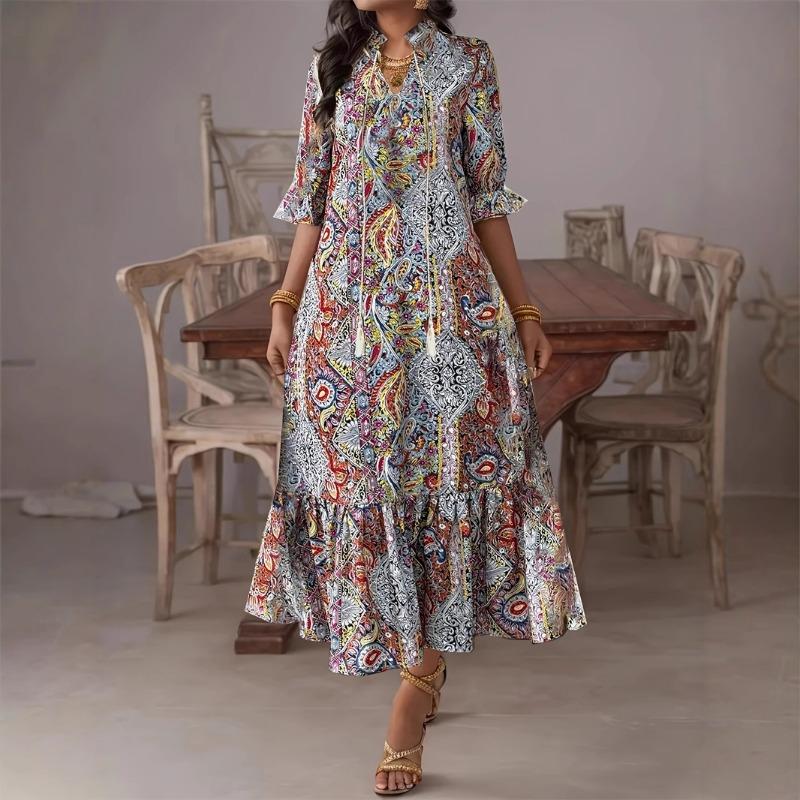 Женское удобное повседневное платье Женское платье с принтом и V-образным вырезом с оборками — купить товар онлайн с бесплатной доставкой по всему миру!