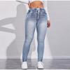 Женские леггинсы в стиле денима с высокой талией и завязками, облегающие однотонные обтягивающие брюки с приподнятыми ягодицами, весна 2025 г.