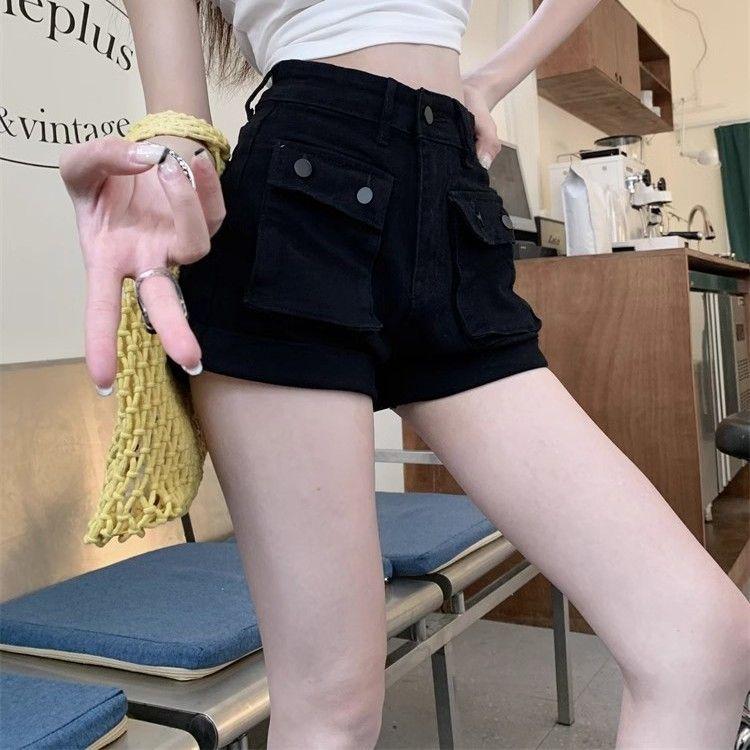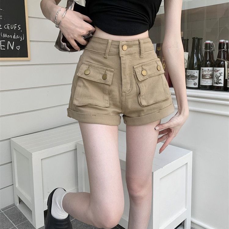 Рабочая одежда, шорты цвета хаки из денима для женщин, летние, тонкие, с высокой талией, брюки трапециевидной формы, маленькие и пикантные шорты для девочек