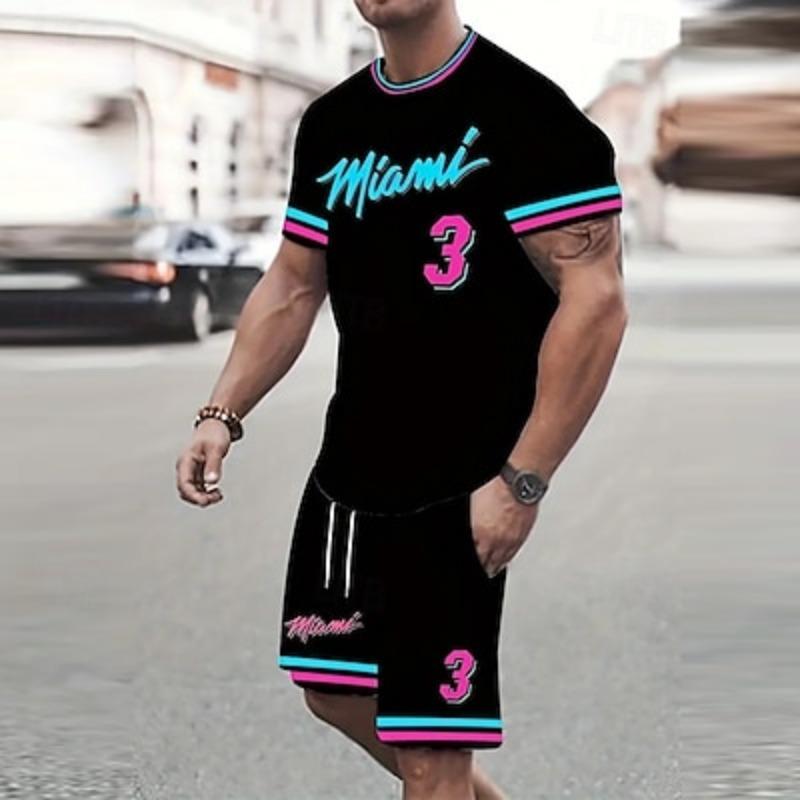 Мужские летние футболки из 2 предметов, летние топы с коротким рукавом, короткие брюки с круглым вырезом, спортивные повседневные комплекты для активного отдыха