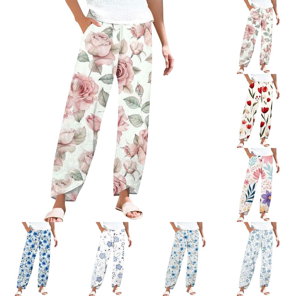 Брюки женские летние повседневные широкие брюки с эластичной резинкой на талии и карманами — купить товар онлайн с бесплатной доставкой до всему миру!