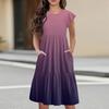 Детская юбка с круглым вырезом, плиссированная, с коротким рукавом, юбка принцессы, модное повседневное платье с карманами для девочек