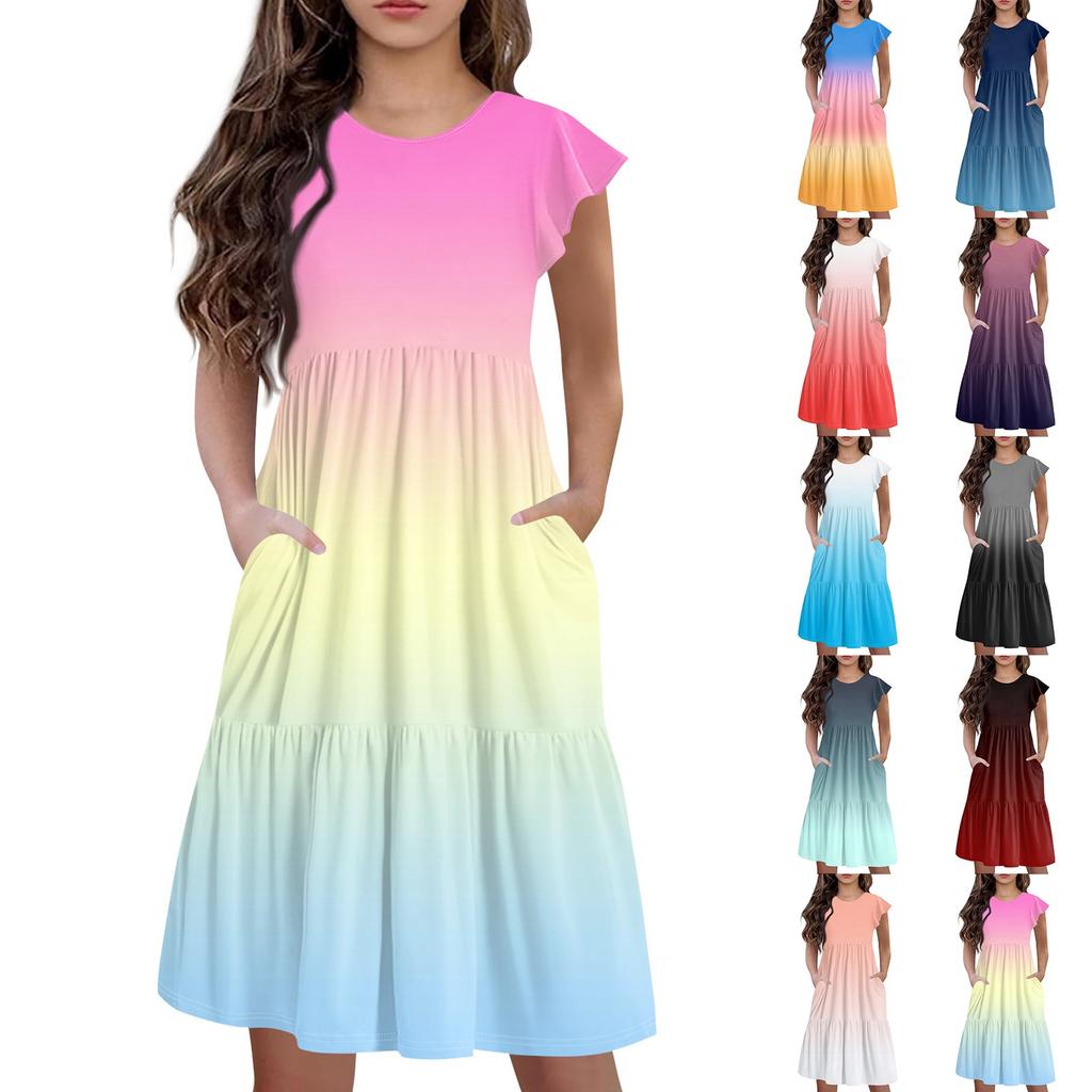 Детская юбка с круглым вырезом, плиссированная, с коротким рукавом, юбка принцессы, модное повседневное платье с карманами для девочек — купить товар онлайн с бесплатной доставкой до всему миру!