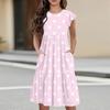 Детская юбка с круглым вырезом, плиссированная, с коротким рукавом, юбка принцессы, модное повседневное платье с карманами для девочек