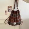Большая вместимость клетчатая сумка на шнурке в корейском стиле Y2k школьный рюкзак в клетку на шнурке для девочек