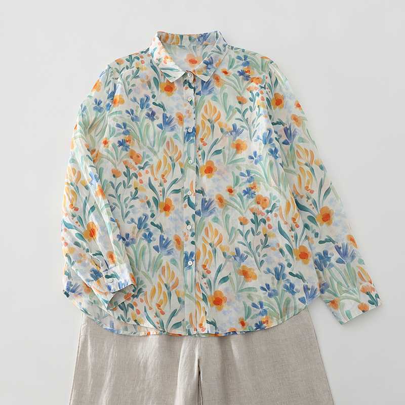 Весенняя рубашка French Niche Baita Тонкая рубашка с принтом Женские топы Блузки Рубашки