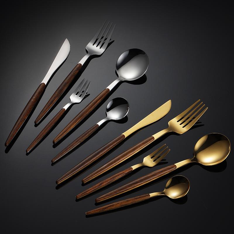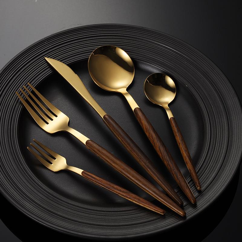 5 шт. Набор столовых приборов из нержавеющей стали, португальский, зажим, деревянная ручка, нож, вилка, ложка, золотой набор столовых приборов, бытовая утварь для кухни