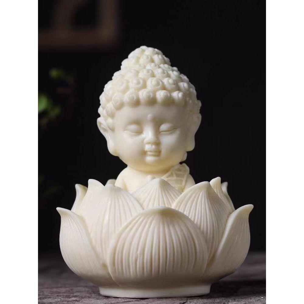 Статуя Будды-ребенка в форме лотоса для спокойного пространства, идеально подходит для украшения дома, рабочего стола в офисе и приборной панели автомобиля (Белый, Упаковка 1 шт.), Мрамор, статуя Будды