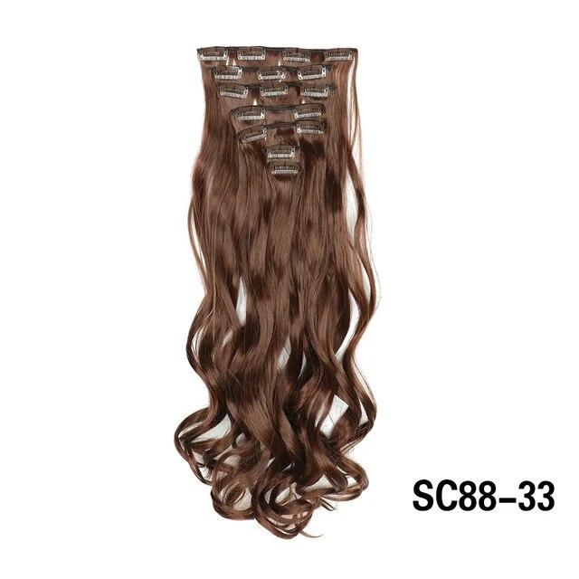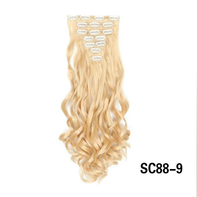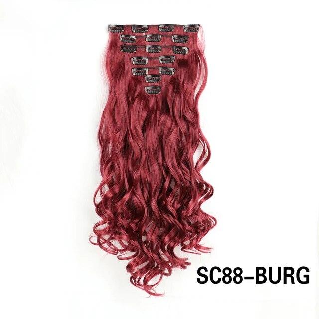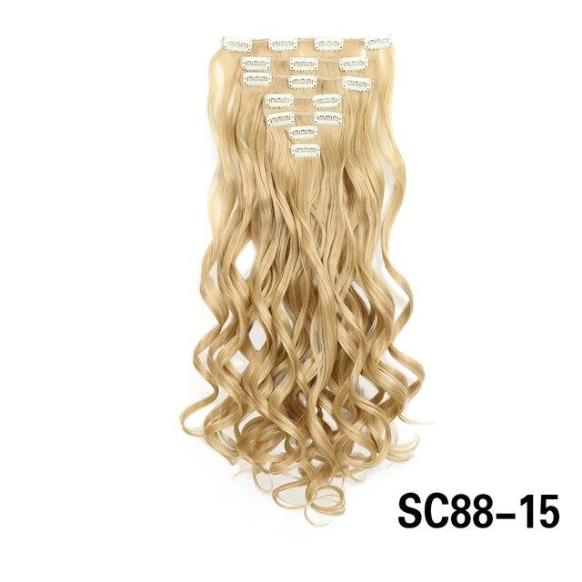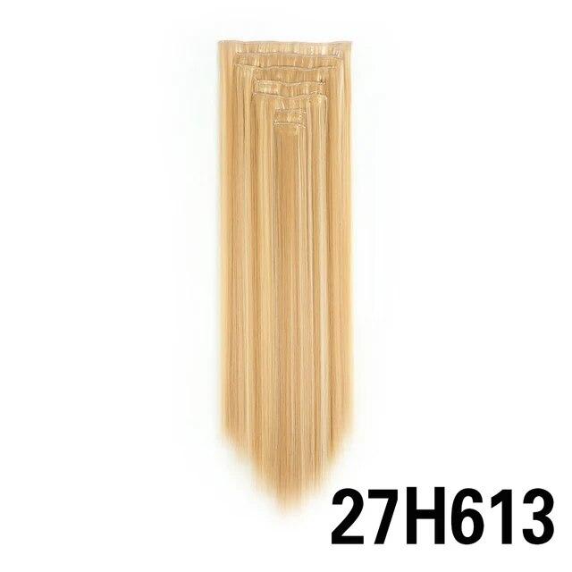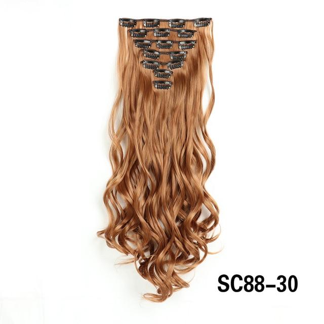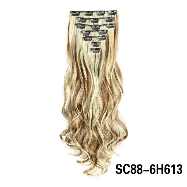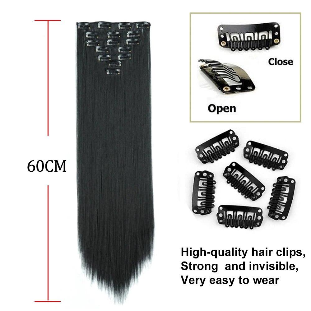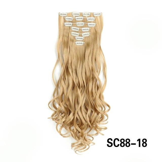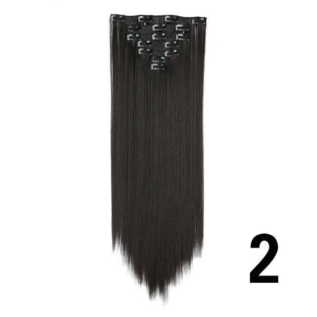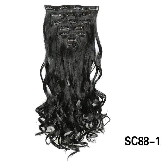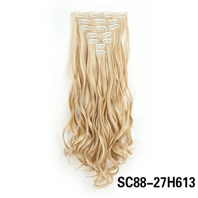 Длинные вьющиеся волосы для наращивания, 16 клипс, синтетические натуральные волосы для женщин, 7 шт./компл., 24 дюйма, омбре, блондинка, красный, черный, искусственные волосы