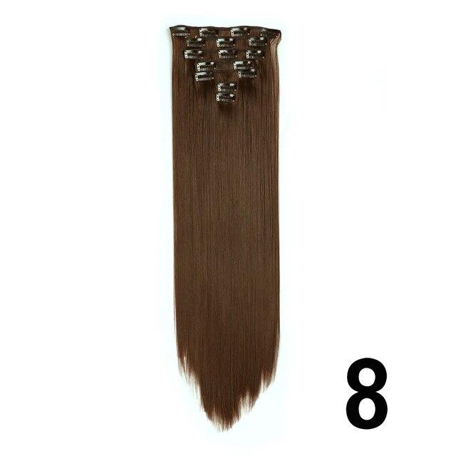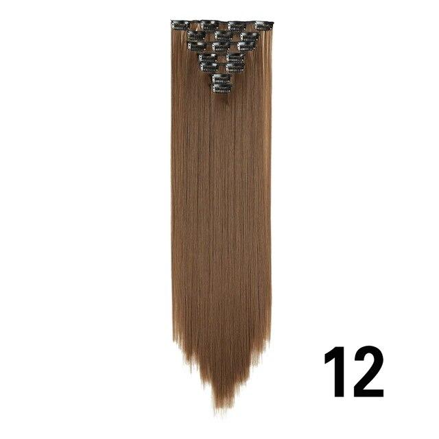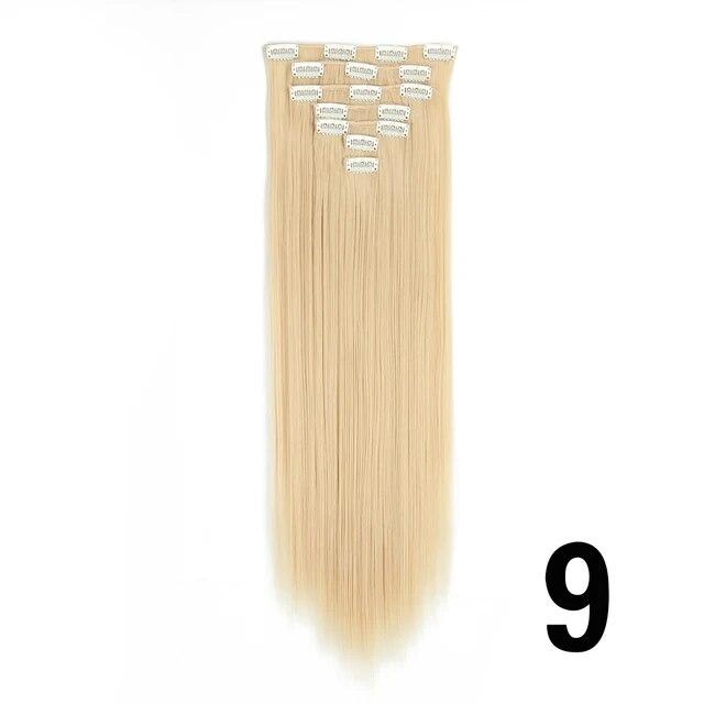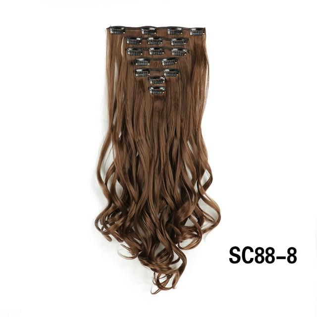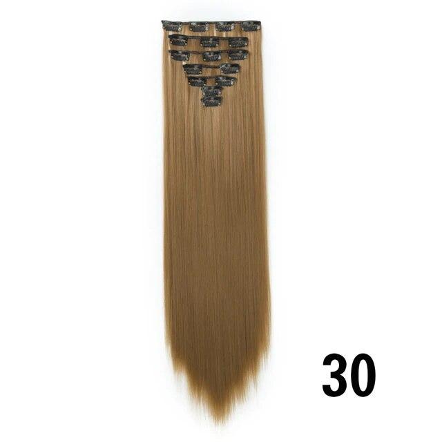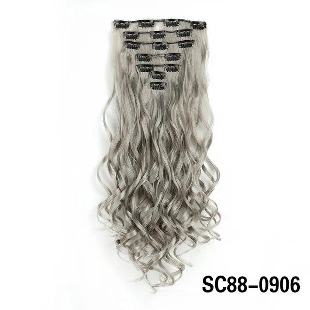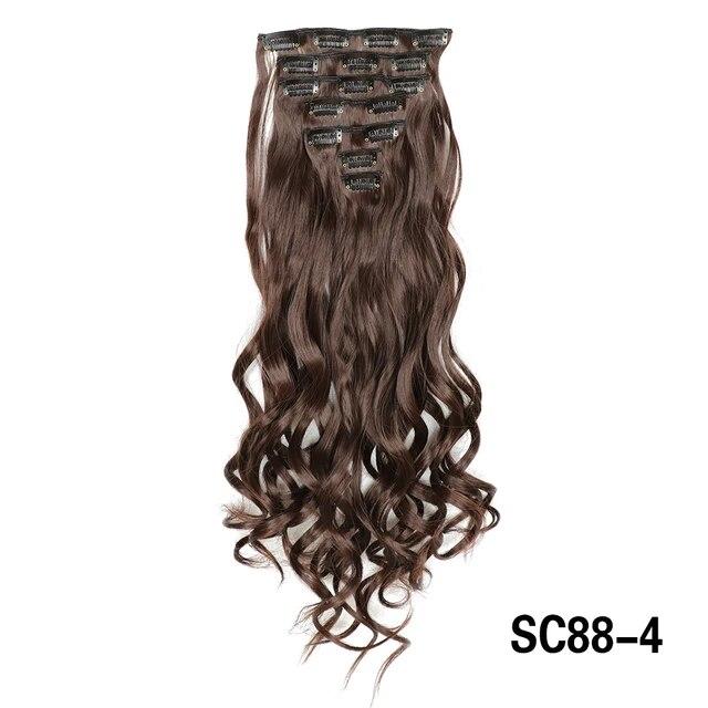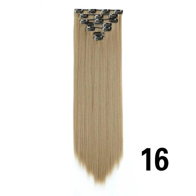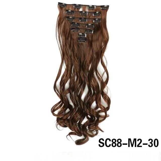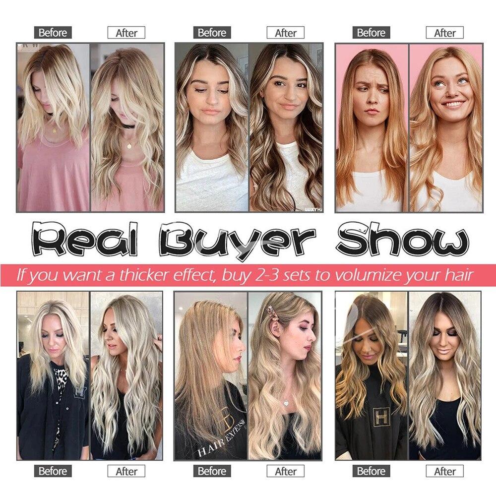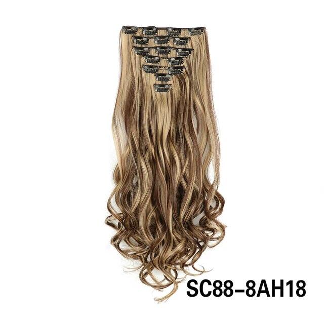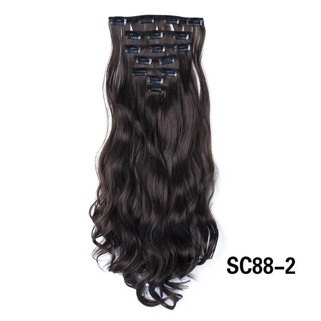 Длинные вьющиеся волосы для наращивания, 16 клипс, синтетические натуральные волосы для женщин, 7 шт./компл., 24 дюйма, омбре, блондинка, красный, черный, искусственные волосы