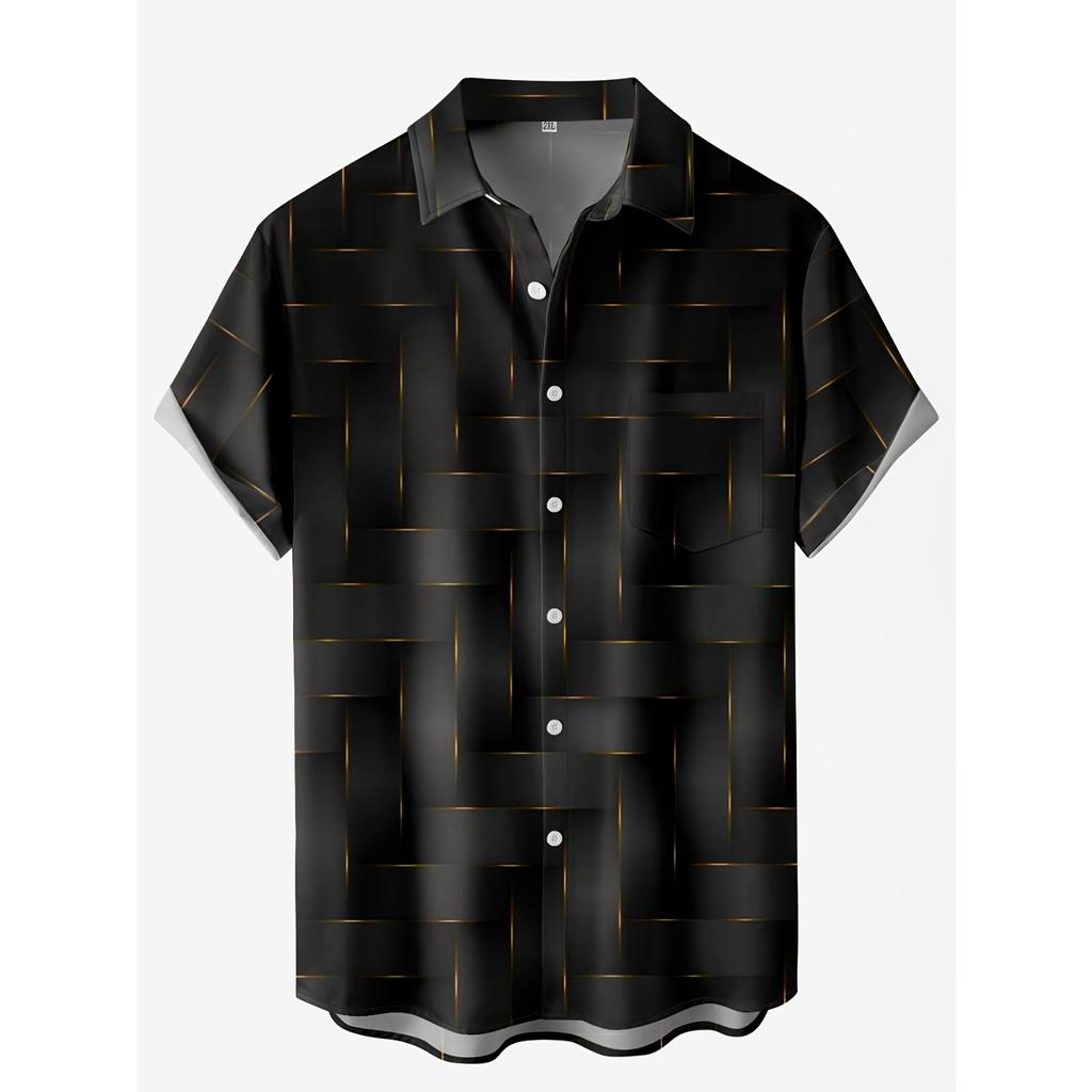 Мужская повседневная рубашка с коротким рукавом на пуговицах, цифровая печать, художественный геометрический узор