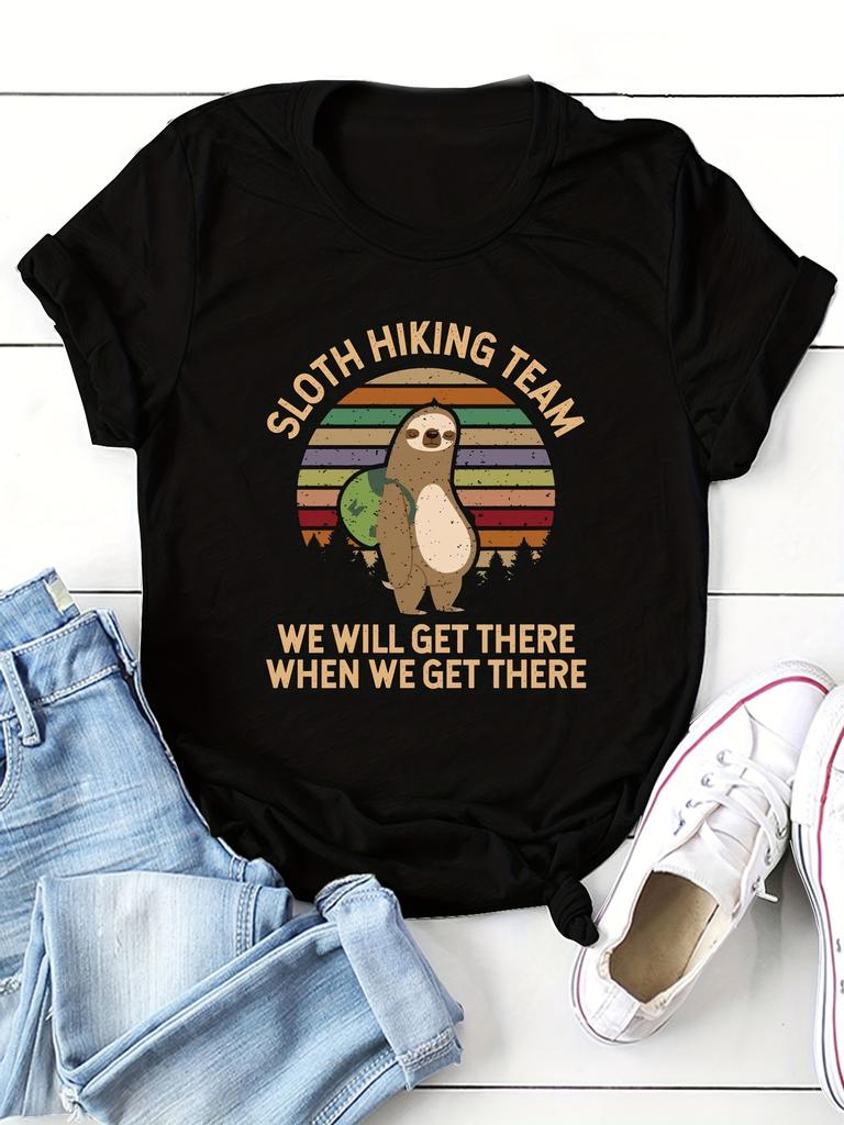 Футболка с принтом Sloth Hiking Team, повседневный топ с круглым вырезом и короткими рукавами, женская одежда