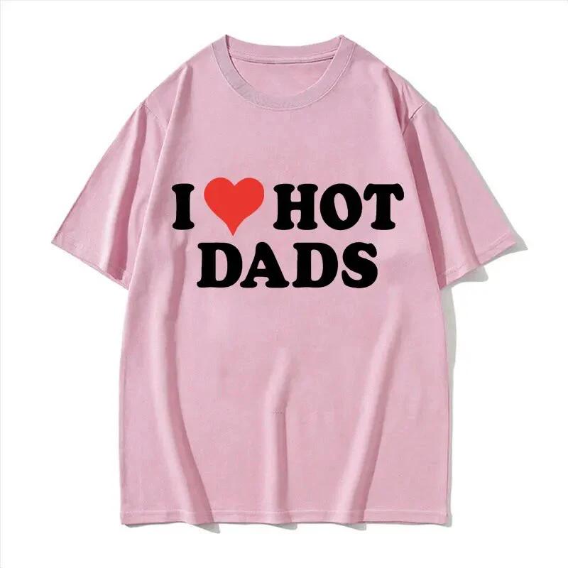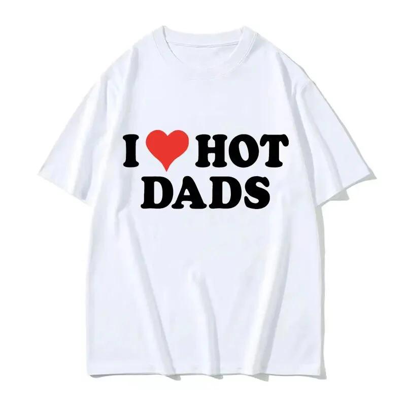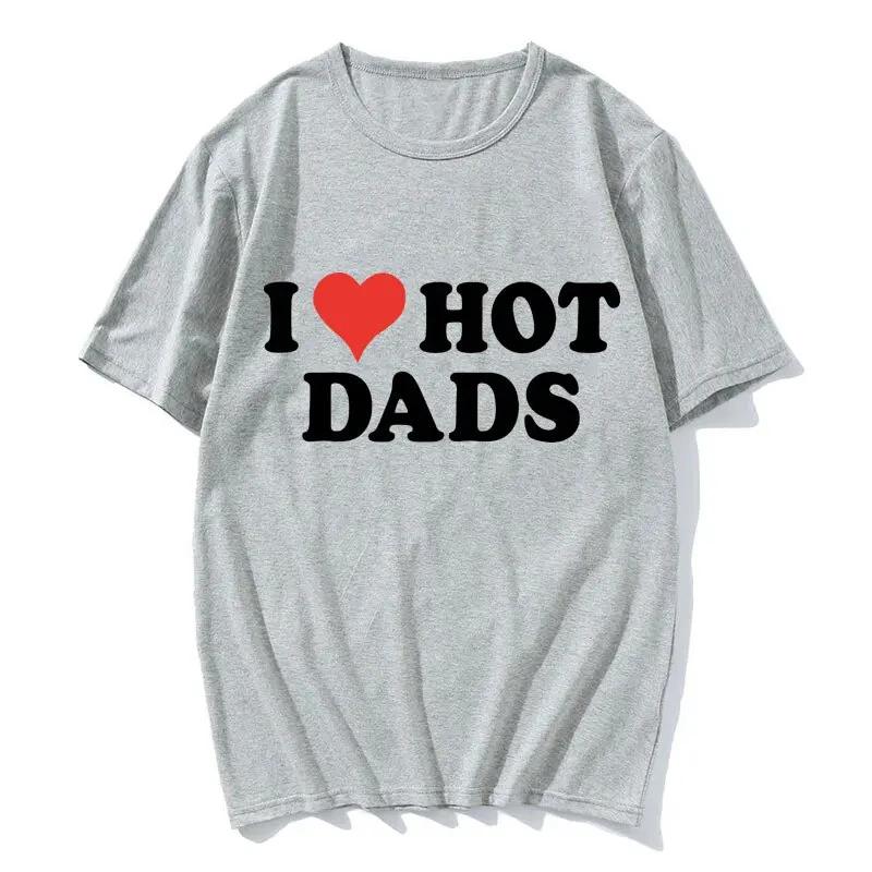 Футболки из хлопка I Love Hot Dads с принтом унисекс для женщин, повседневные футболки с круглым вырезом и короткими рукавами, свободные футболки Harajuku унисекс, топы, одежда