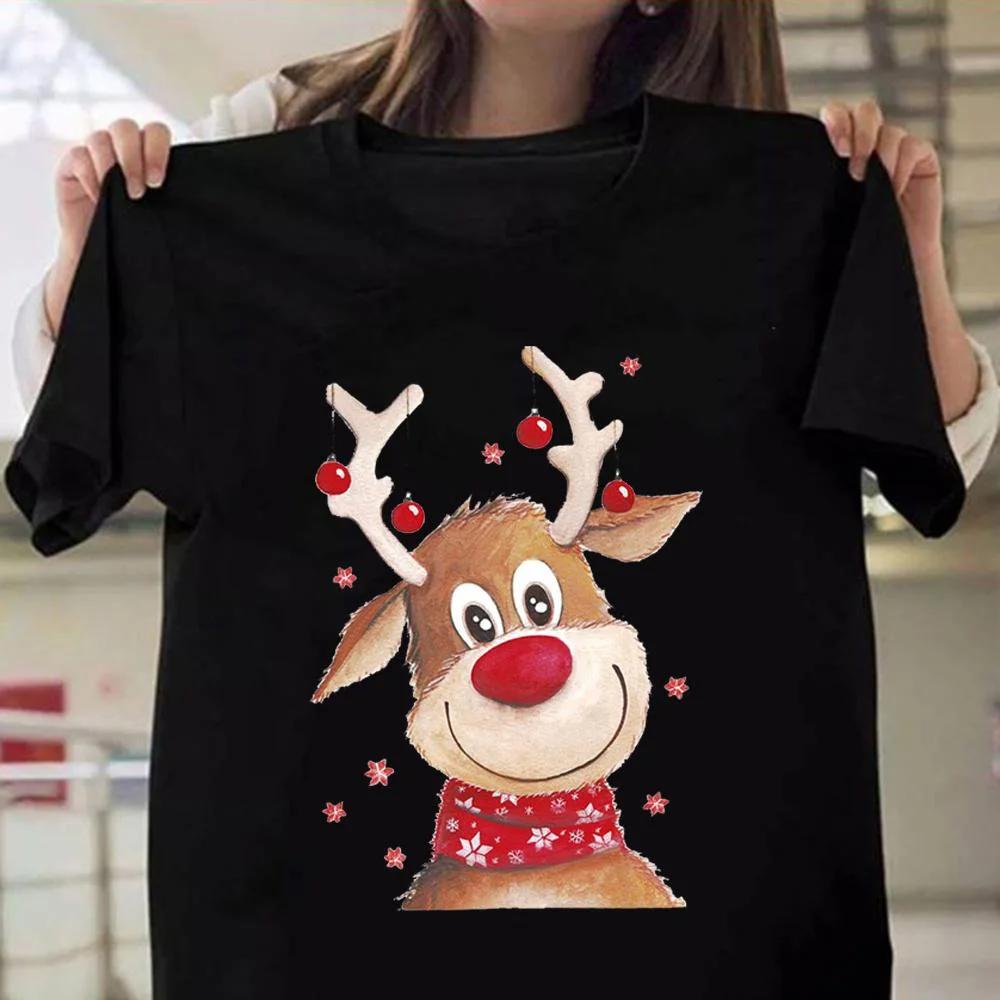 Новые рождественские футболки с оленями, женская мода с коротким рукавом, хлопковая футболка с оленями, уличная одежда, футболки унисекс в стиле Харадзюку, топы, одежда
