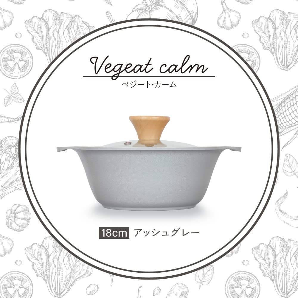 Wahei Freiz Tabletop Ash Размер Совместимо с Керамикой Легко Включает рецепты, контролируемые Vegito Calm Pot, 18 см, Серый, 6, 1-2 человека, IH/Газ,
