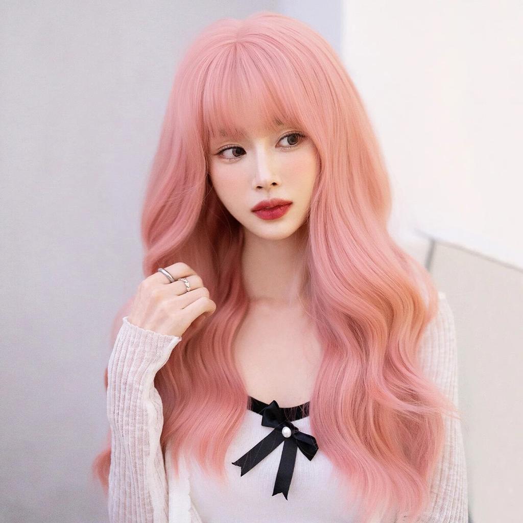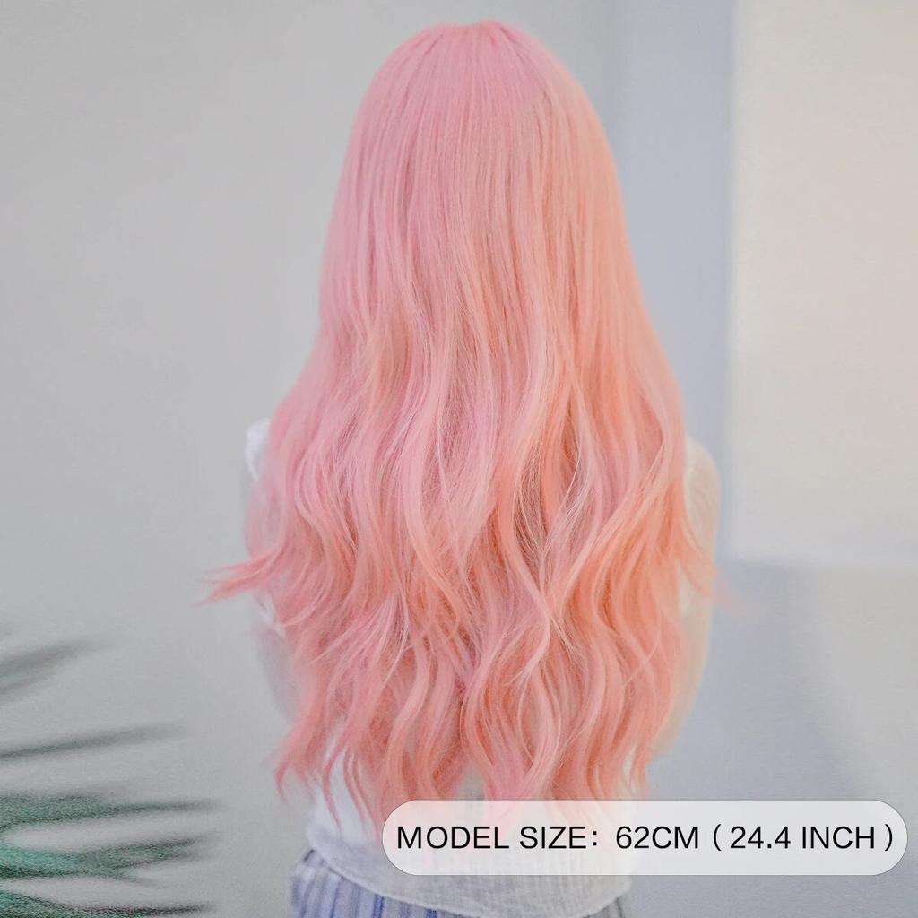 ПАРИКИ Длинный волнистый розовый парик для женщин, повседневные вечерние, натуральные синтетические волосы, парики с пушистой челкой, 24 дюйма