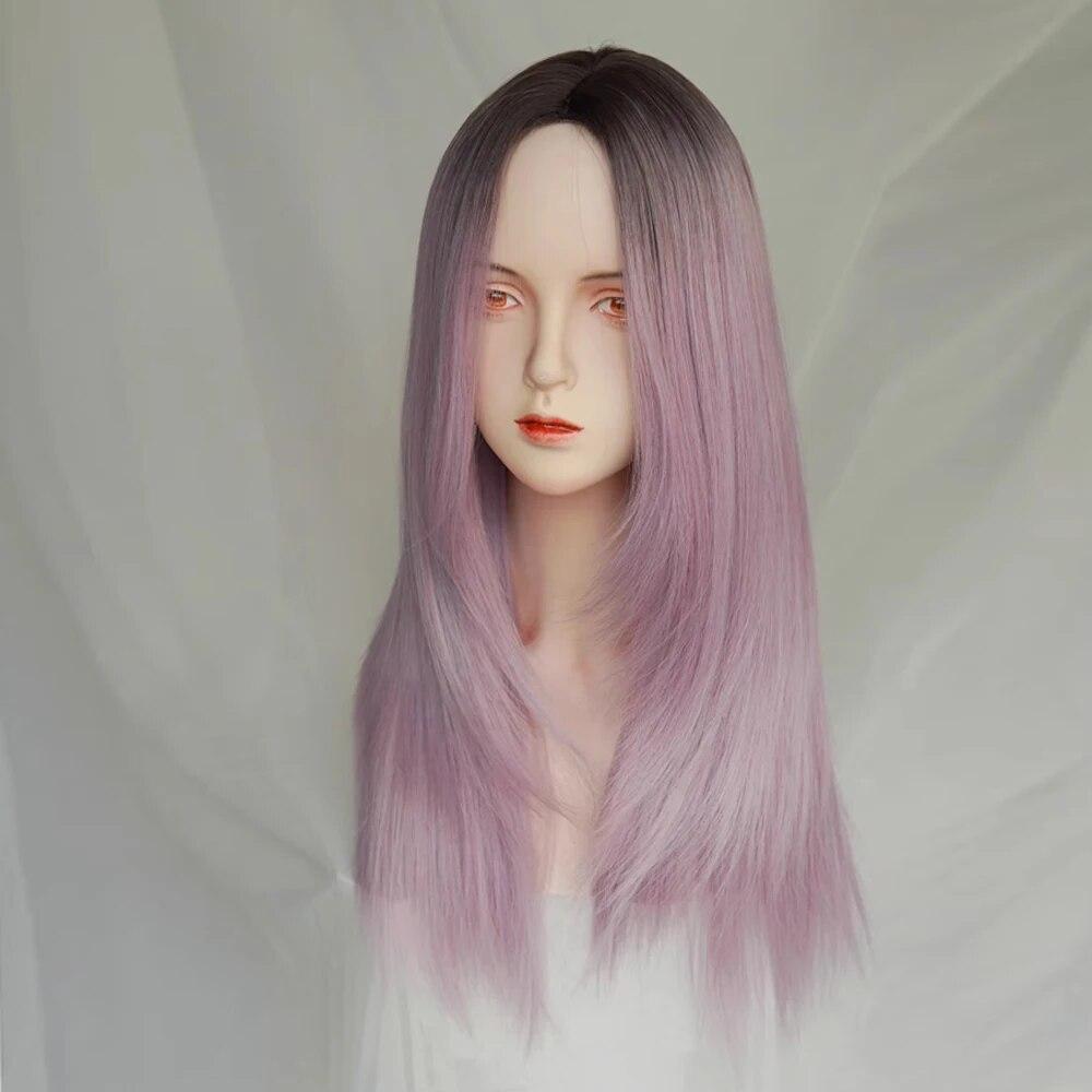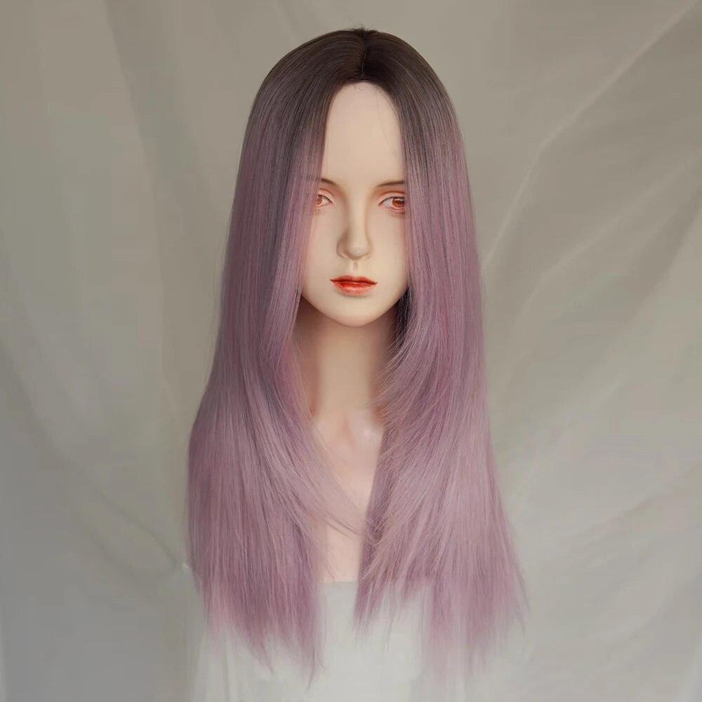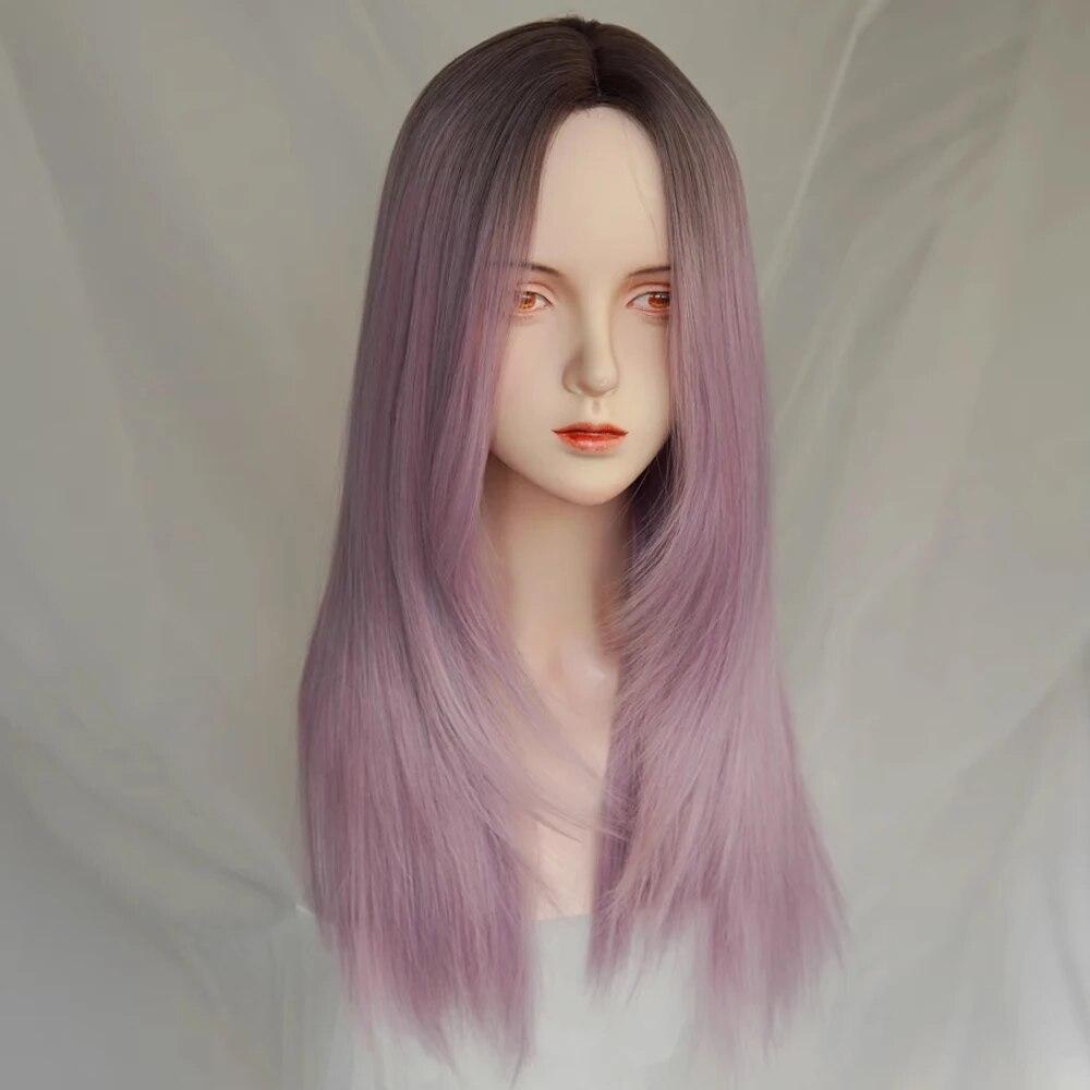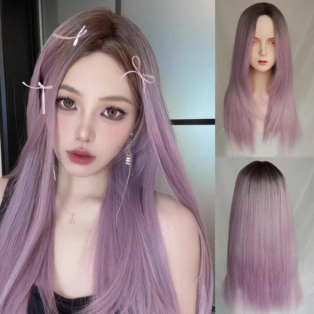 Длинный синтетический женский фиолетовый смешанный парик, средняя часть, Лолита, косплей, натуральные пушистые волосы, термостойкий парик для повседневной вечеринки