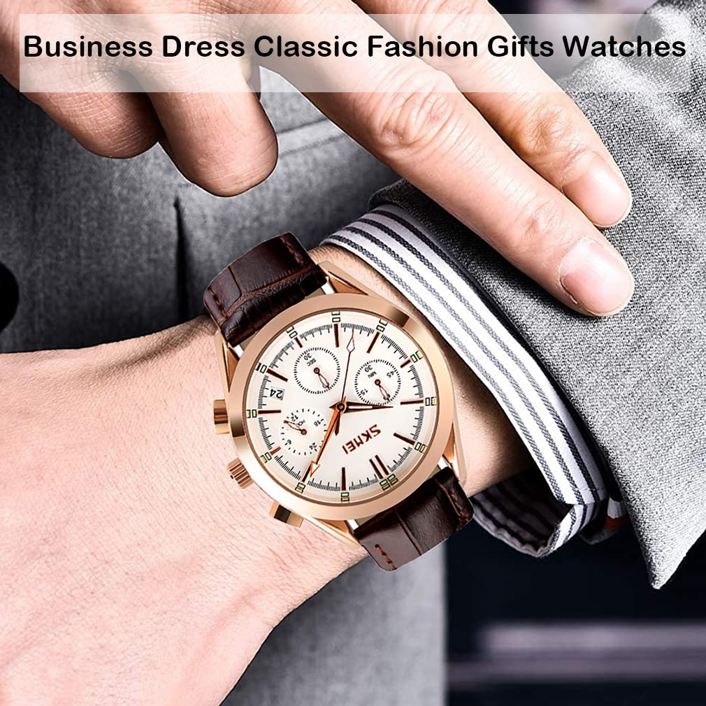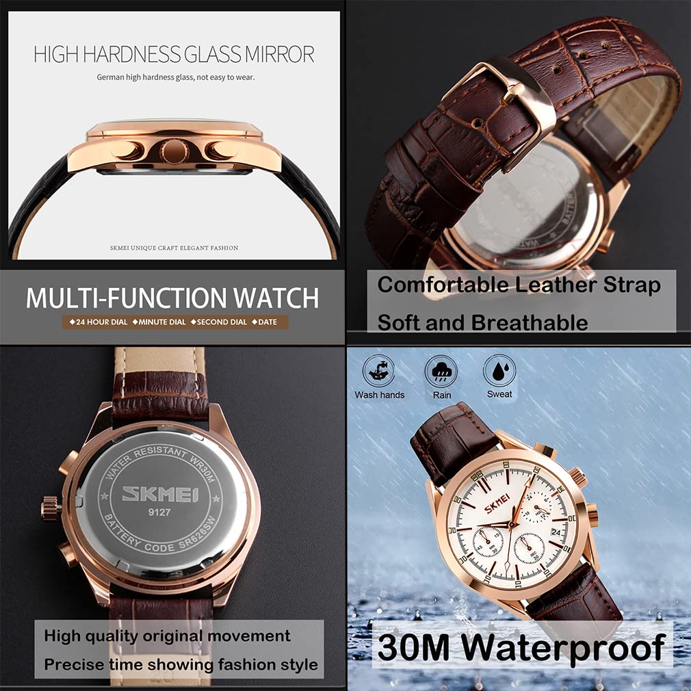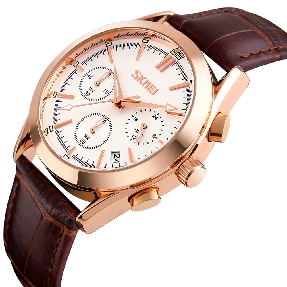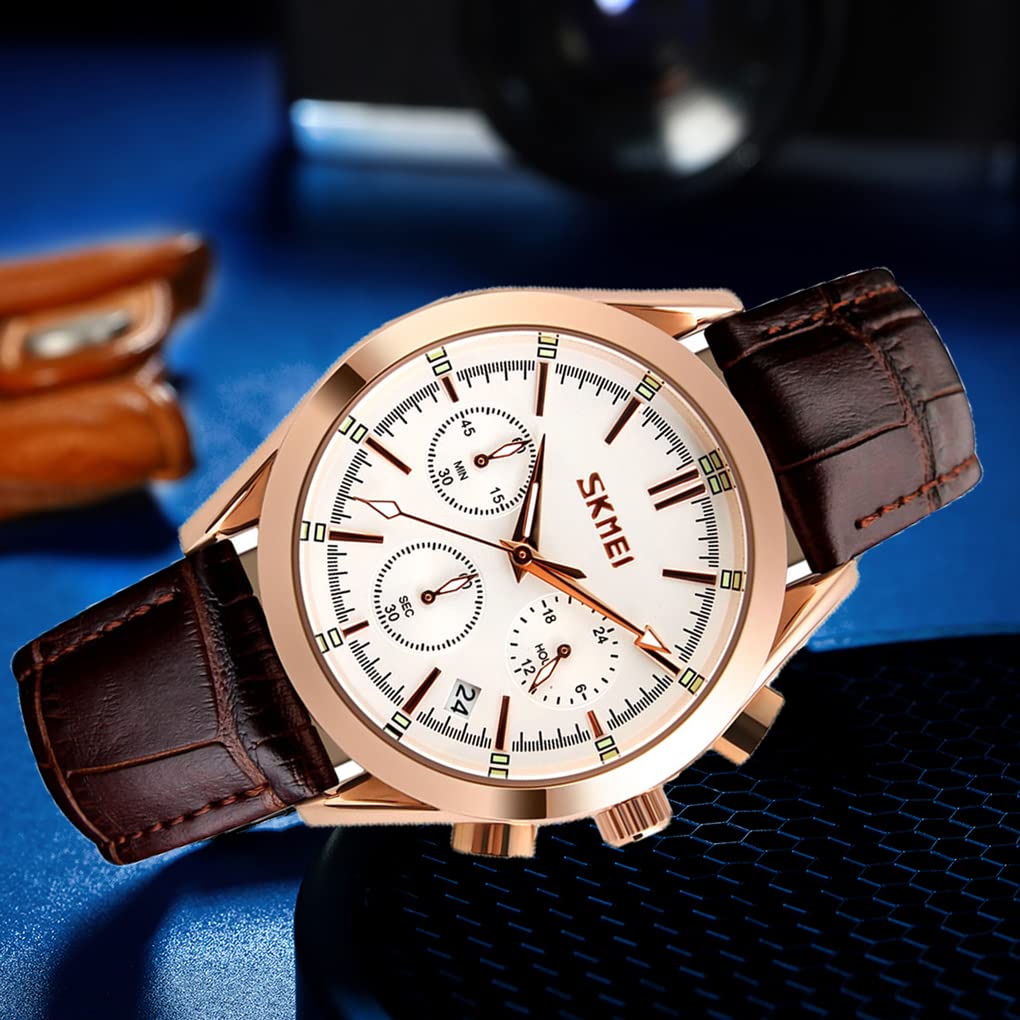 Часы для мужчин, коричневый кожаный ремешок, наручные часы, хронограф, водонепроницаемые, брендовые, аналоговые, деловые, стильные, повседневные, светящиеся часы, роскошный подарок, белые часы для