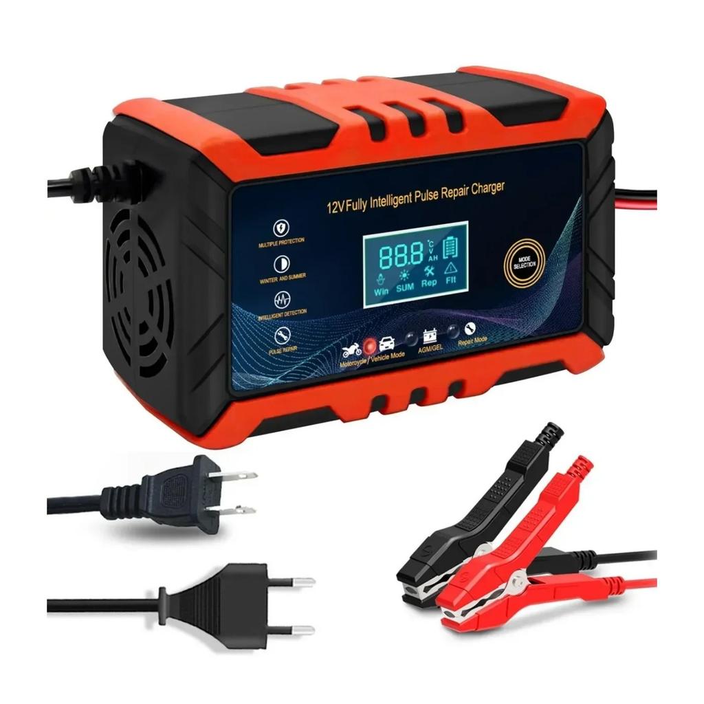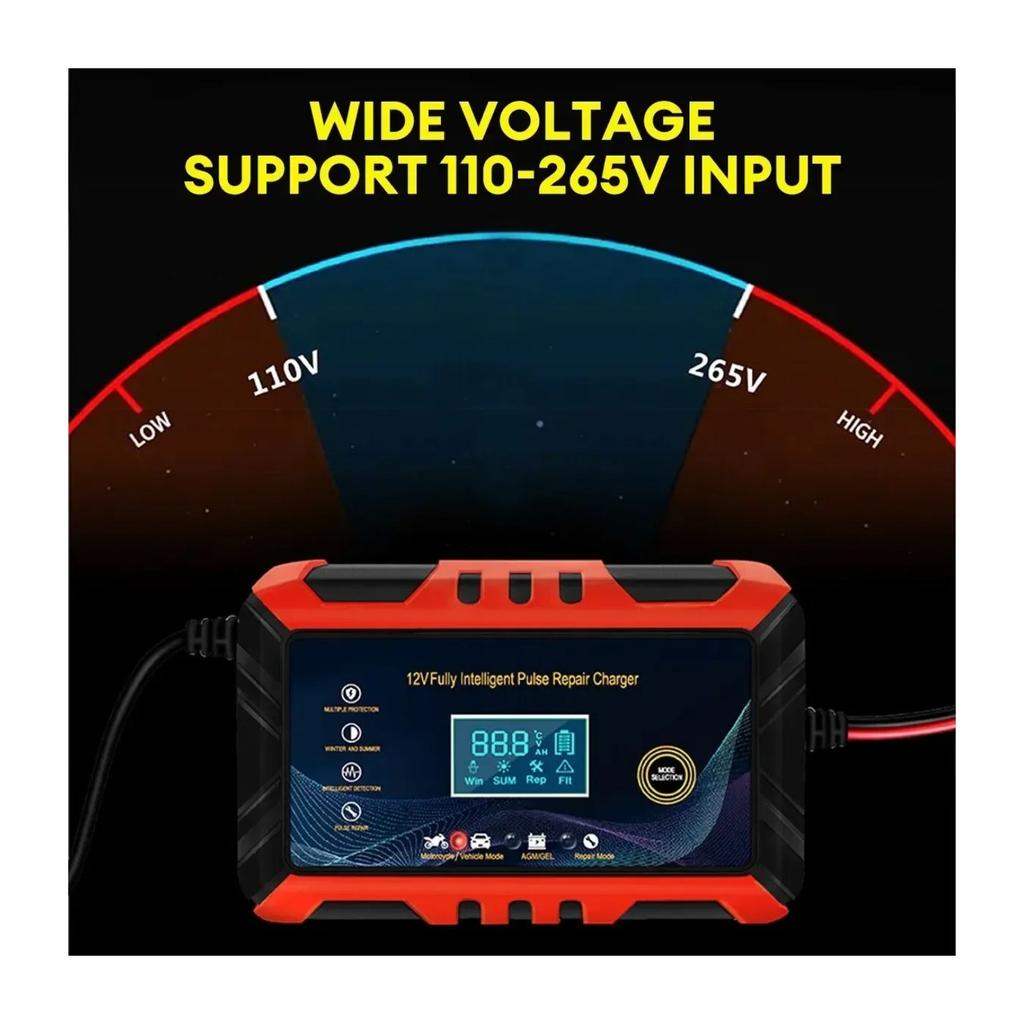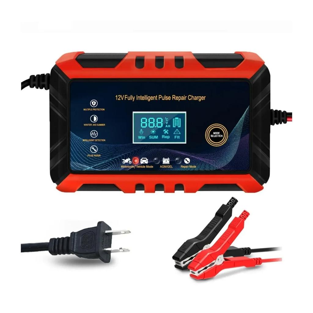 12 В интеллектуальное зарядное устройство для автомобильного аккумулятора - импульсный ремонт, ЖК-дисплей, подходит для автомобилей, мотоциклов, судов и водных мотоциклов