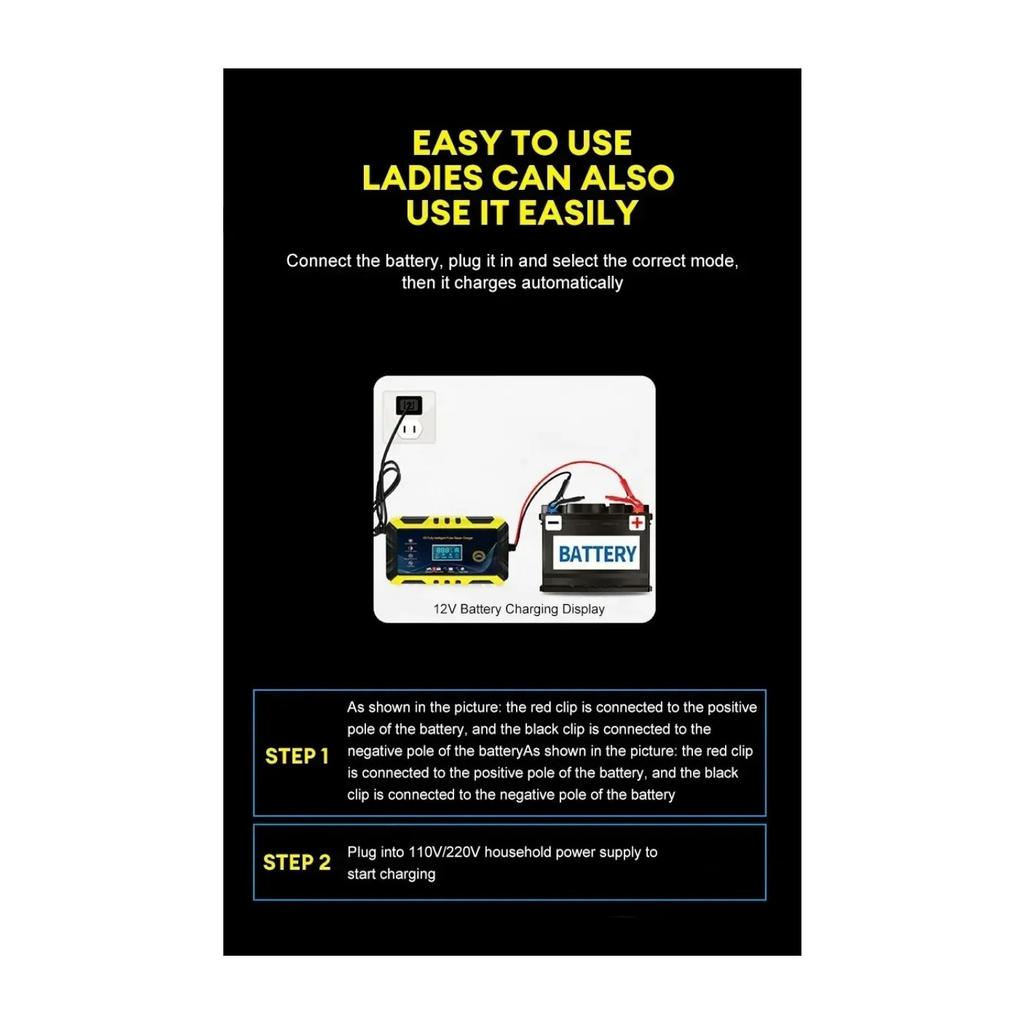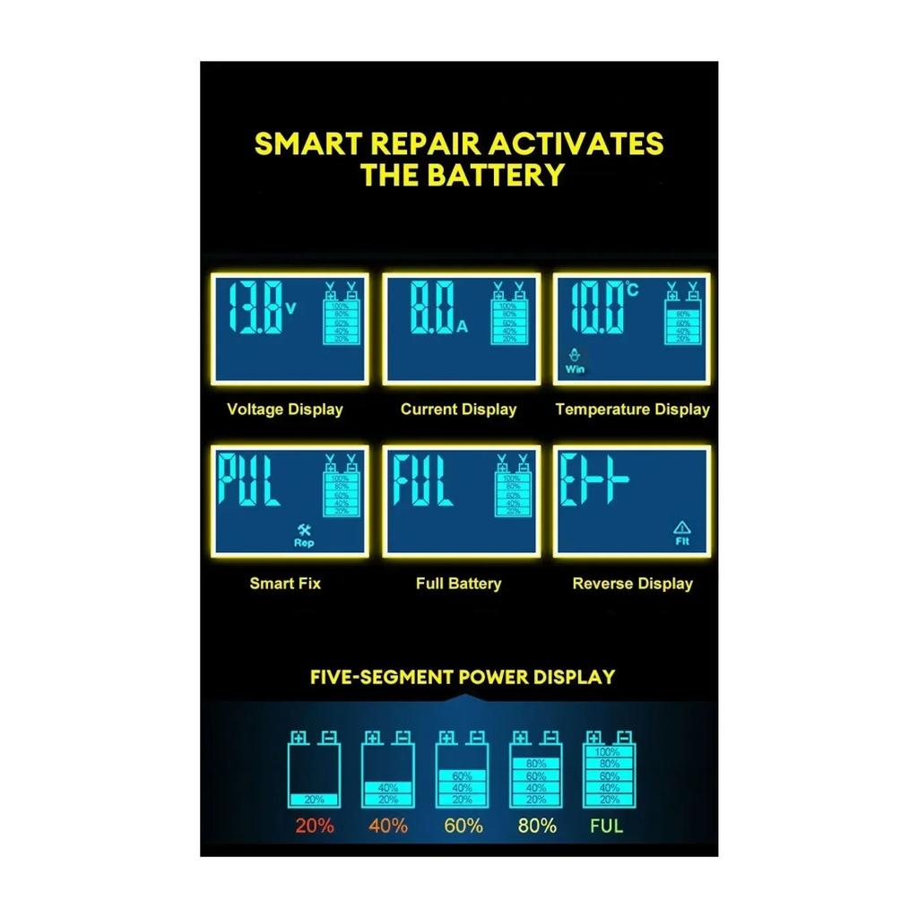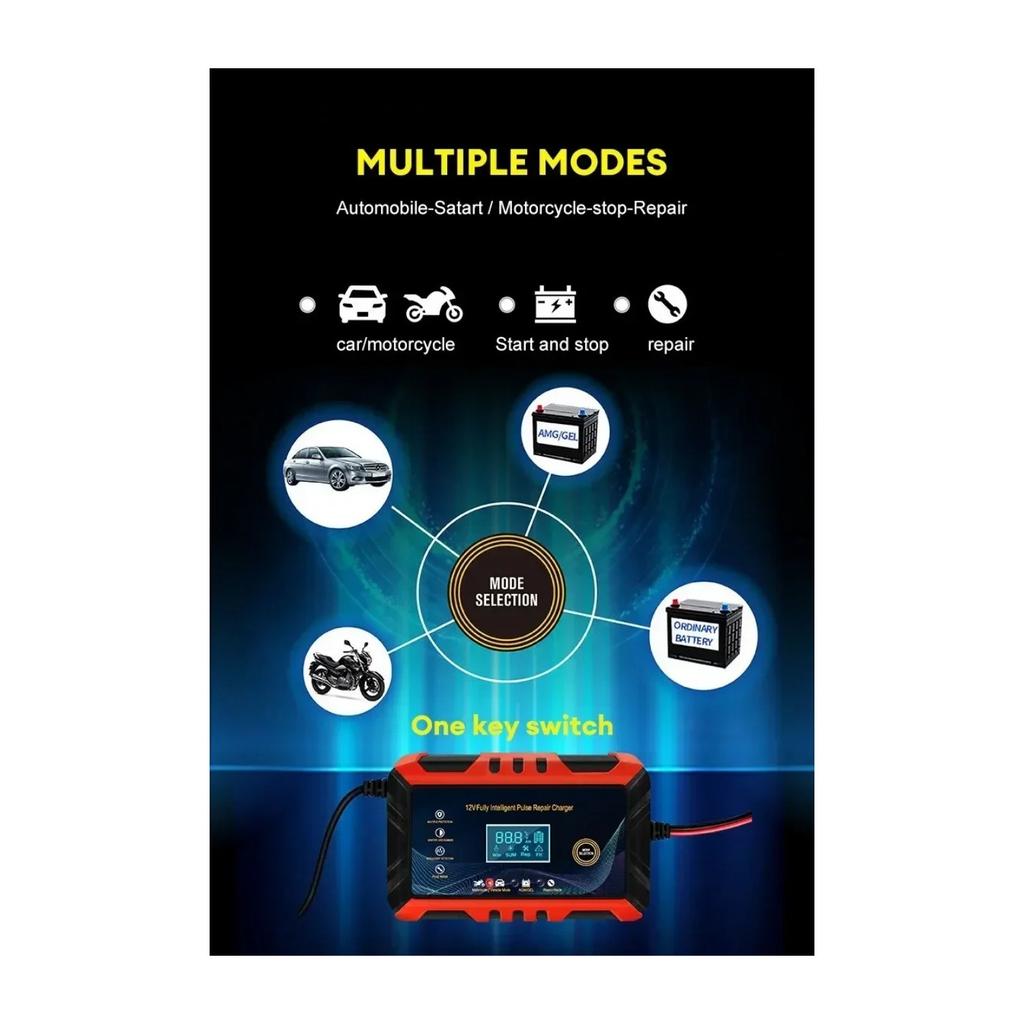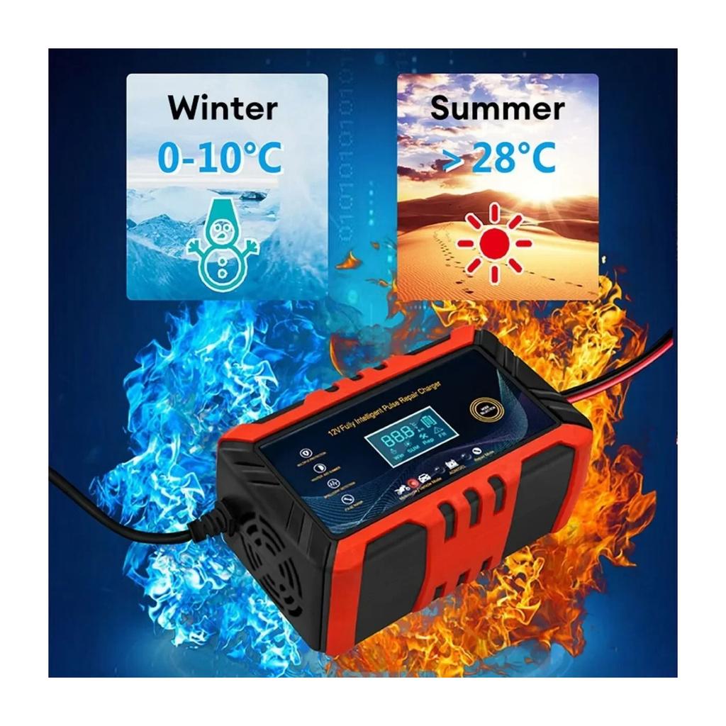 12 В интеллектуальное зарядное устройство для автомобильного аккумулятора - импульсный ремонт, ЖК-дисплей, подходит для автомобилей, мотоциклов, судов и водных мотоциклов