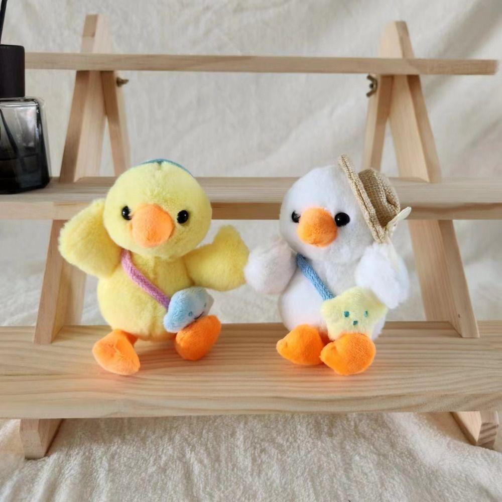 Брелок для ключей Kawaii Duck Plush, мультяшная соломенная шляпа, брелок для ключей с уткой, повязка на голову, плюшевые утки, кулон для детей