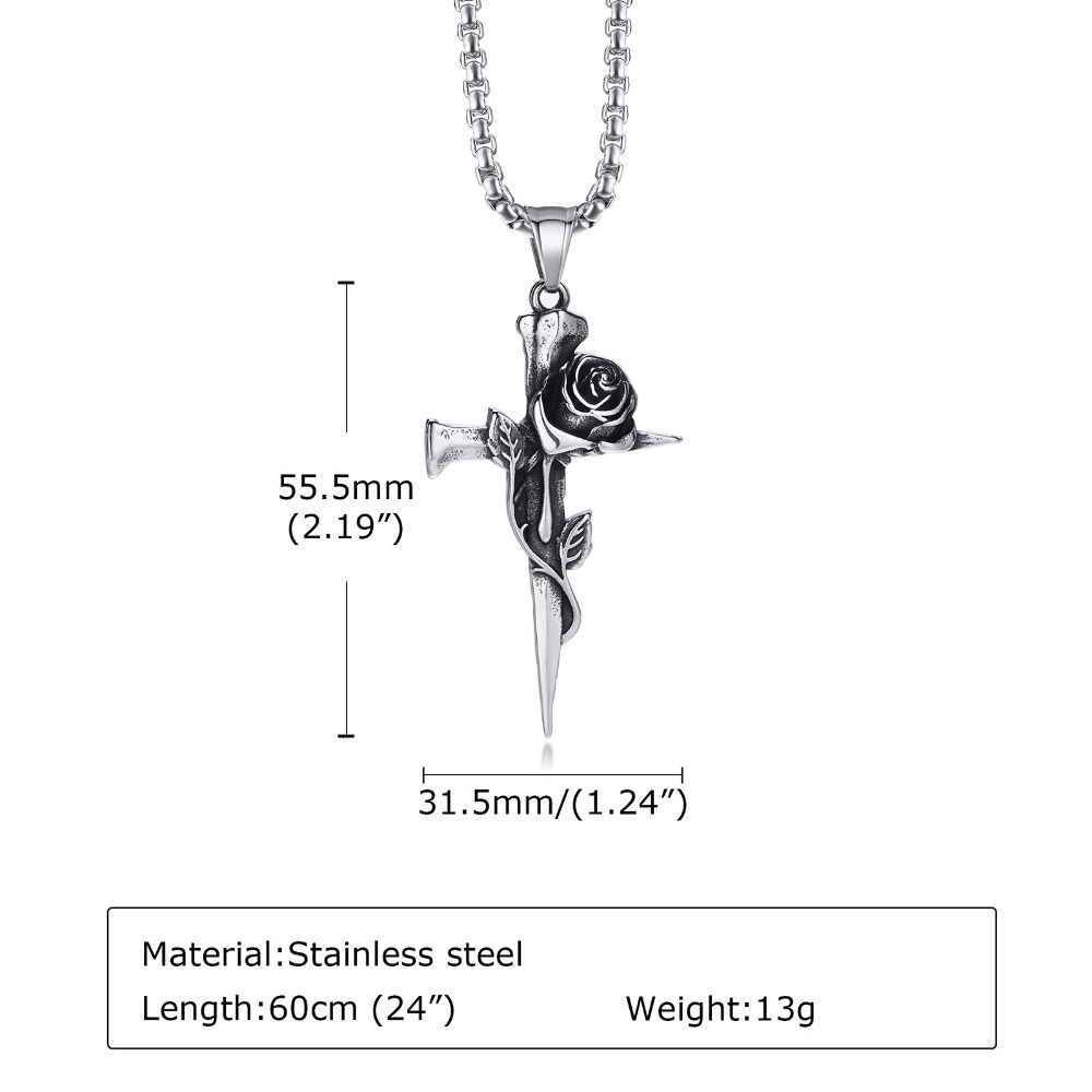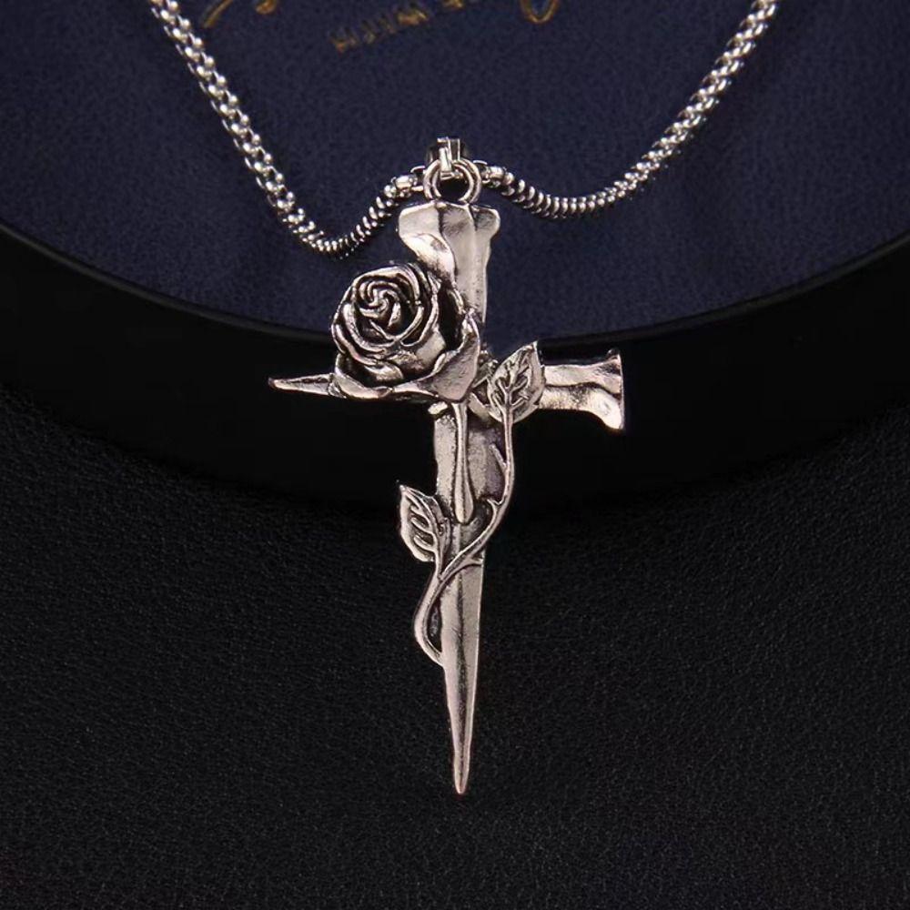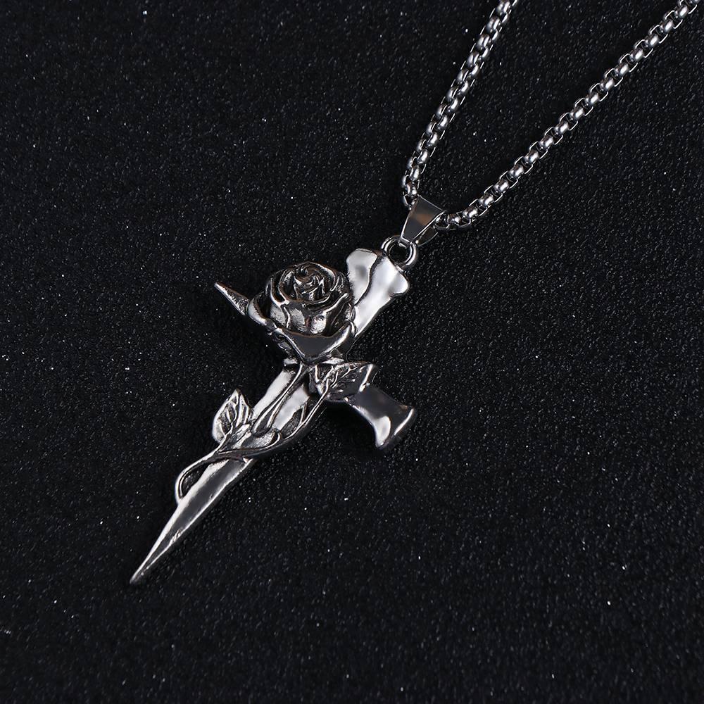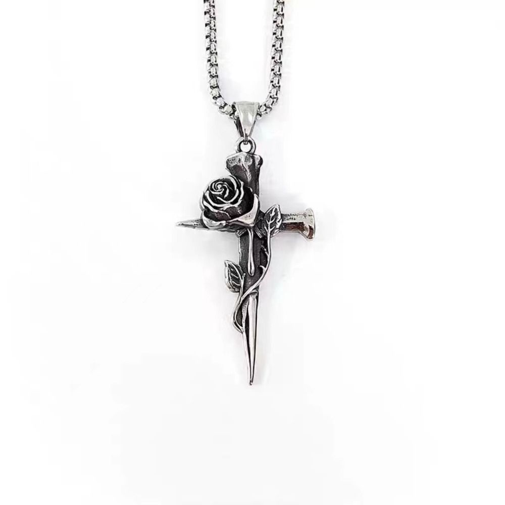 Hip Hop Nail Rose Necklace Zinc Zinc Alloy Cross Pendant Necklace Personality Party