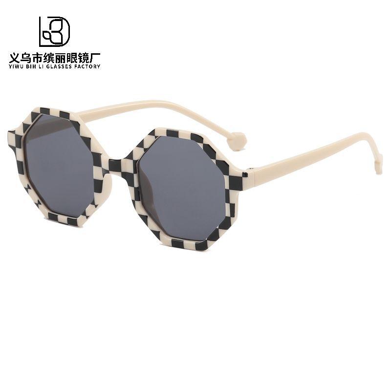 Детские солнцезащитные очки для мальчиков и девочек, модные, многоугольные, ретро, с сумкой, цветочные, персонализированные солнцезащитные очки, детские, универсальные, трендовые очки