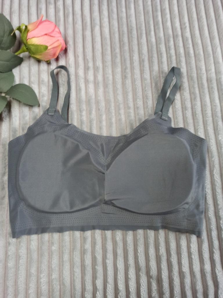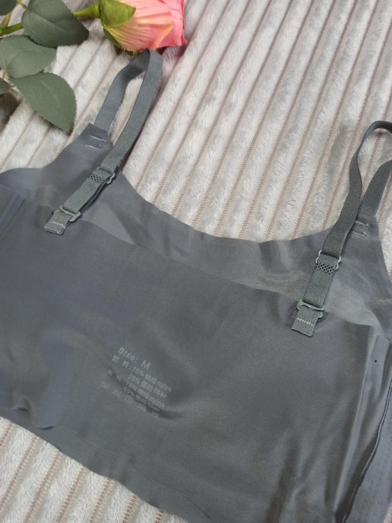 Женский бесшовный бюстгальтер У продавца предоставлен на выбор в 3 цветах и 3 размерах. Я заказывала серый и размер М Бюстгалтер пошит из эластичного материала: хорошо тянется, но и форму не теряет. В бюстгальтере имеются небольшие чашечки, которые при желании можно вынуть. Бюстгальтер без застёжек. Бретели тонкие, регулируются по длине. Бюстгальтер полностью соответвент фото и описанию продавца. Заказом довольная.