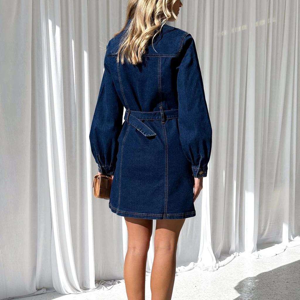 IHUASU Весна Осень Модный Повседневный Тонкий Длинный Рукав Джинсовое Платье Для Женщин