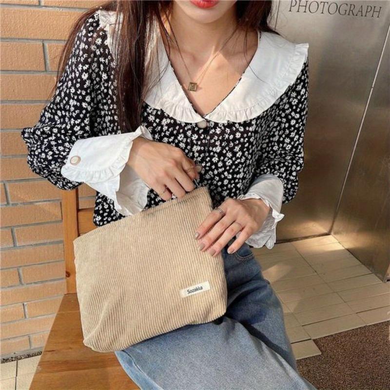 Товар Вельветовая женская косметичка из хлопчатобумажной ткани, косметичка, ручная дорожная сумка, органайзер для помады, модный клатч на молнии, кошелек для телефона