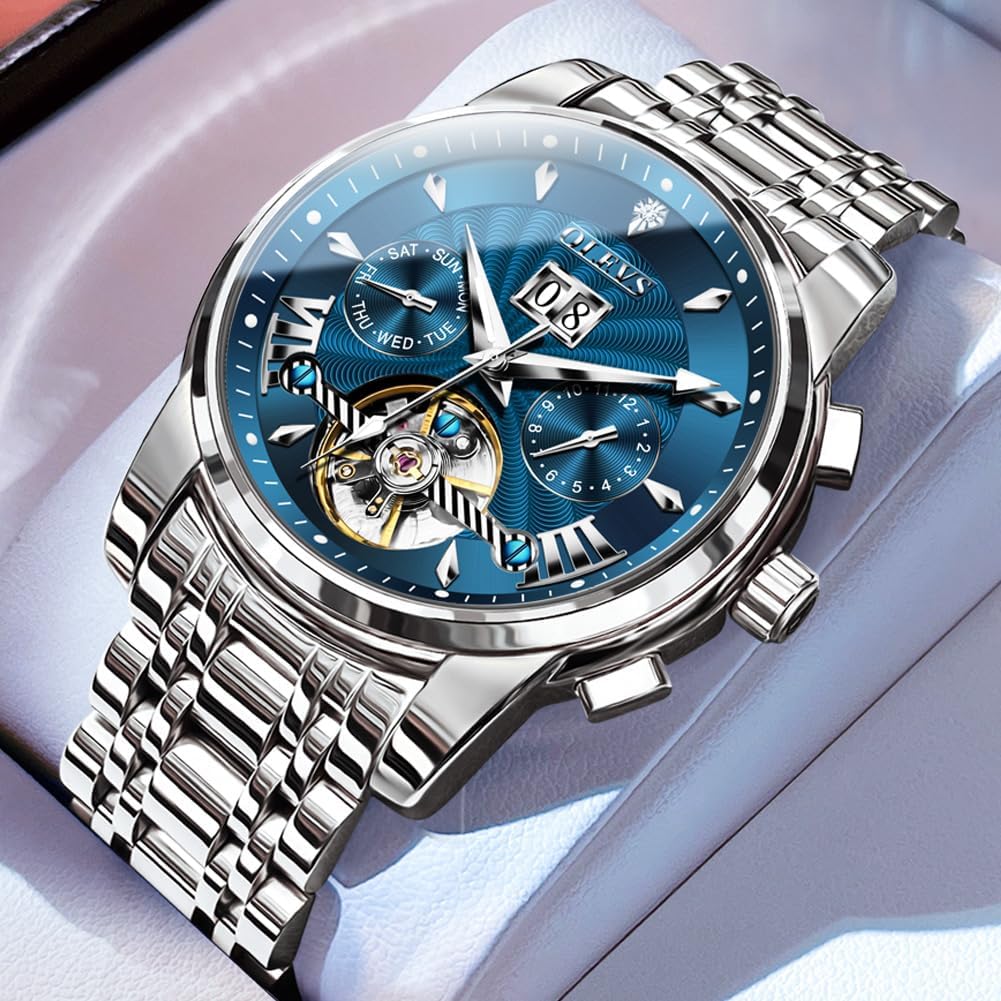 Часы OLEVS с автоматическим ручным заводом, механические, модные, стильные, водонепроницаемые, светящиеся, брендовые, деловые, из нержавеющей стали, для мужчин и женщин