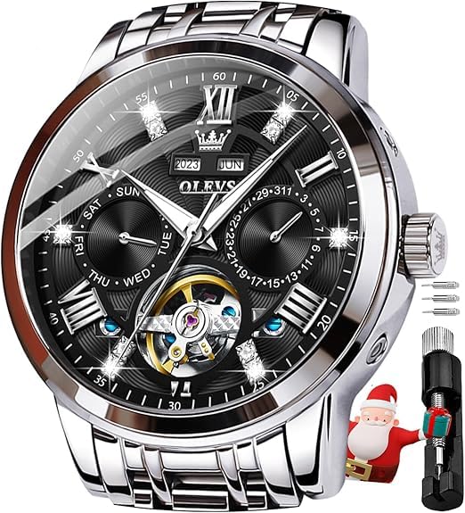 OLEVS механические автоматические ручные вечные календари скелетонированные металлические браслет ретро стильные часы светящиеся водонепроницаемые часы для мужчин черные мужские и мужские