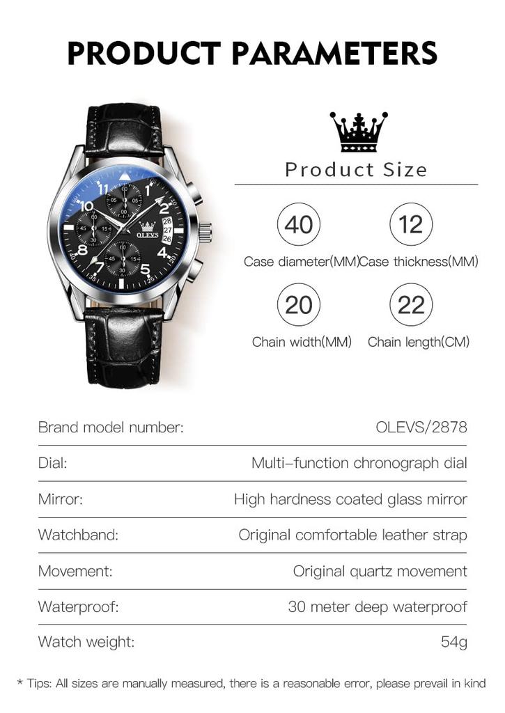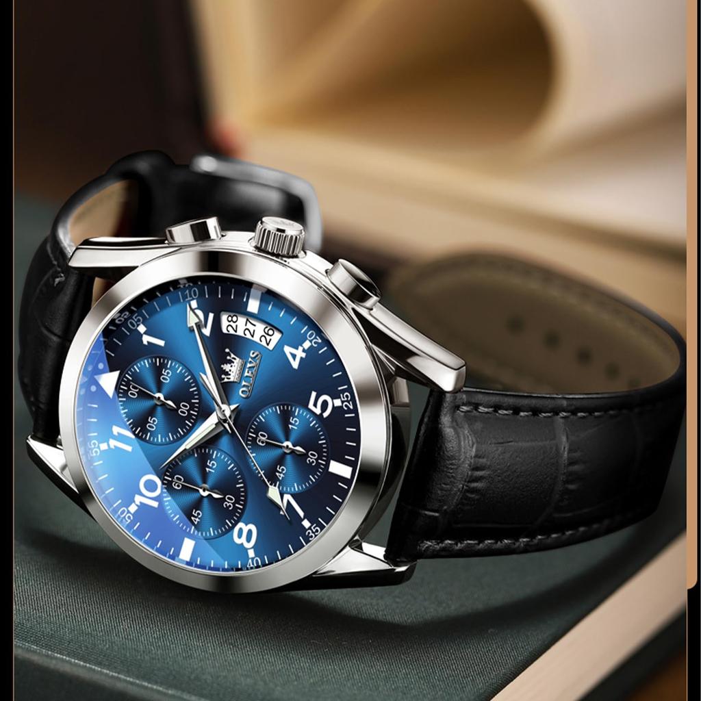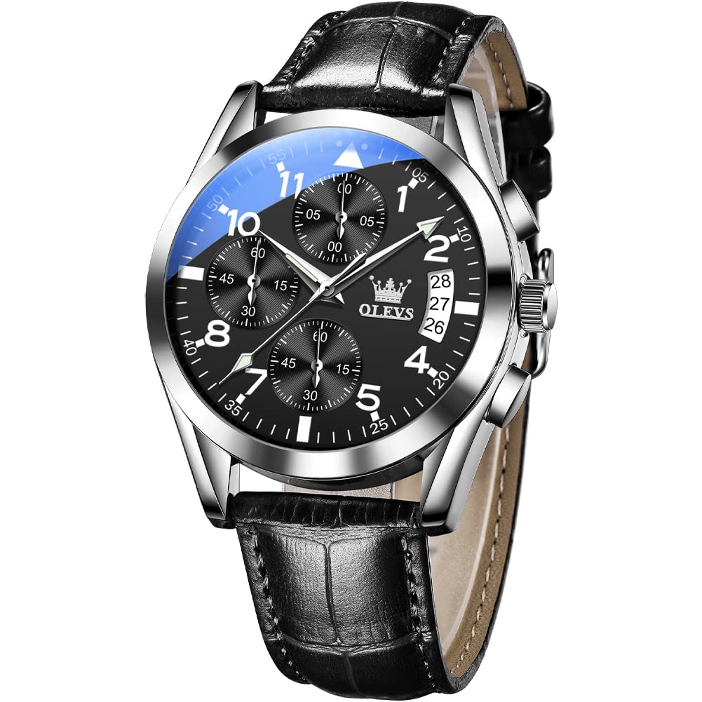 Индексы представляют собой простые арабские цифры.. Белый шрифт обеспечивает видимость, создавая при этом ощущение минимализма, поскольку имеет идеальный размер.. Часы на руку мужские роскошные хронограф часы для: Взрослые, отцы, братья, бойфренды, мужья, студенты, папы, женихи наблюдают. Мужские часы OLEVS рекомендуются в качестве подарков близким на такие праздники, как День отца, дни рождения, Рождество и юбилеи, а также в качестве награды для себя.