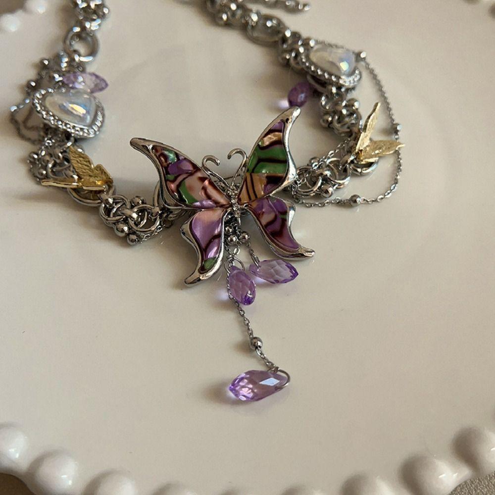 Sweet Butterfly Tassel Necklace Colorful Sweet Choker Vintage Y2k Clavicle Chain Daily