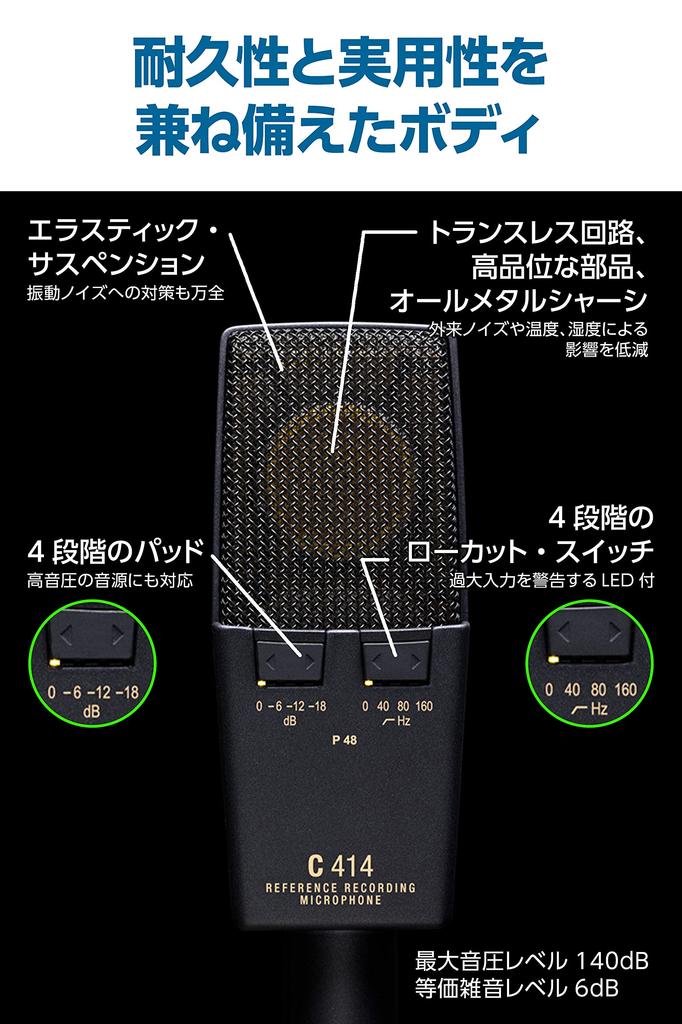 ✅ [4-летняя гарантия для долгосрочного использования с душевным спокойствием] Конденсаторный микрофон от AKG (от ХАРМАН), давно зарекомендовавший себя производитель аудиотехники, основанный в 1947 году.. Представлена оригинальная модель Hibino с 4-летней гарантией "C414 XLⅡ-Y4". Серия C414 — конденсаторный микрофон, который пользуется огромной популярностью с 1971 года, когда было выпущено первое поколение.. Следуя качеству звука последующих шедевров, оно было усовершенствовано за счет новых технологий, таких как девять типов направленности, включая однонаправленный микрофон, а также функции снижения звукового давления и шума.. Конденсаторный микрофон с профессиональным качеством звука и характеристиками.. Вы можете использовать его дольше и с большим спокойствием.