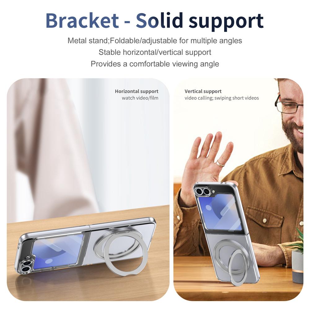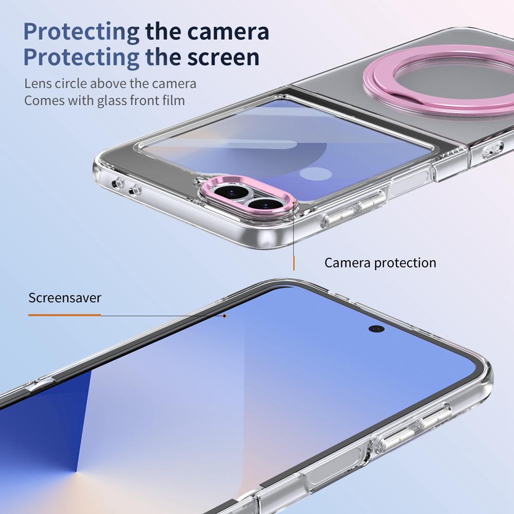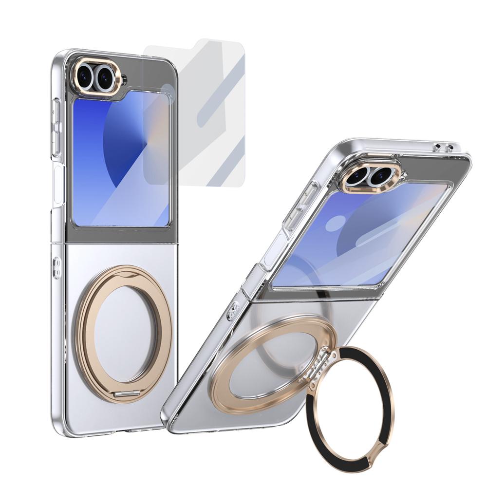 KEYSION Вращающийся на 360° магнитный чехол-подставка с кольцом для Samsung Galaxy Z Flip 6 5 5G Прозрачный чехол для телефона с защитой экрана