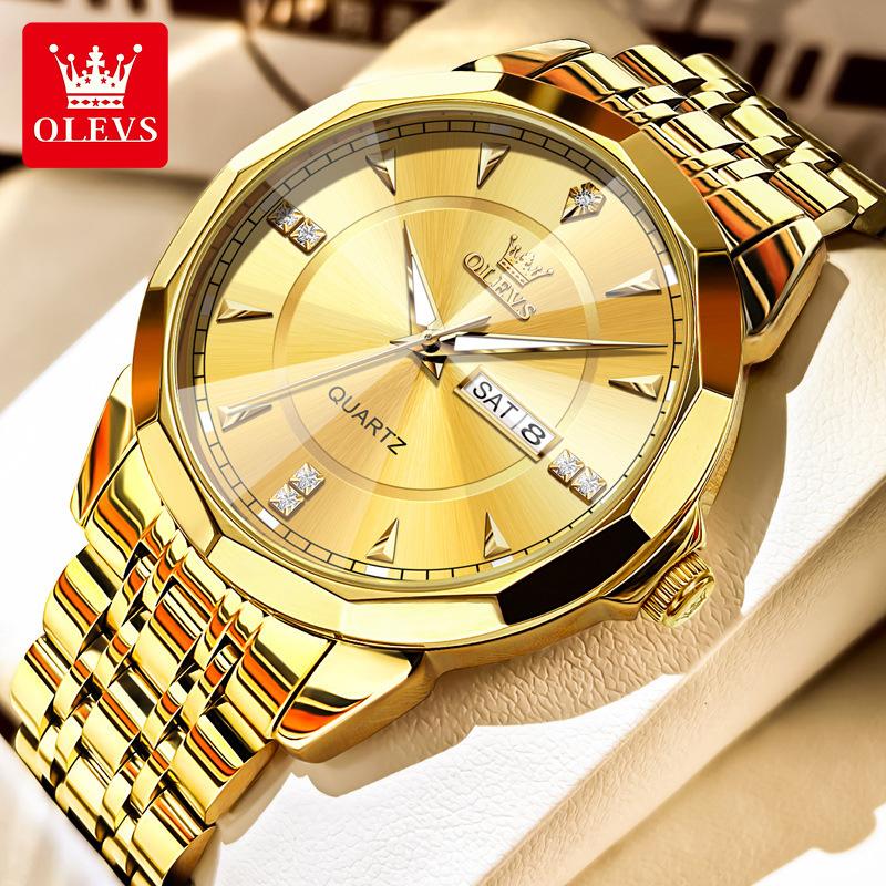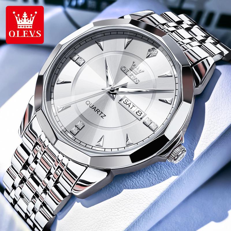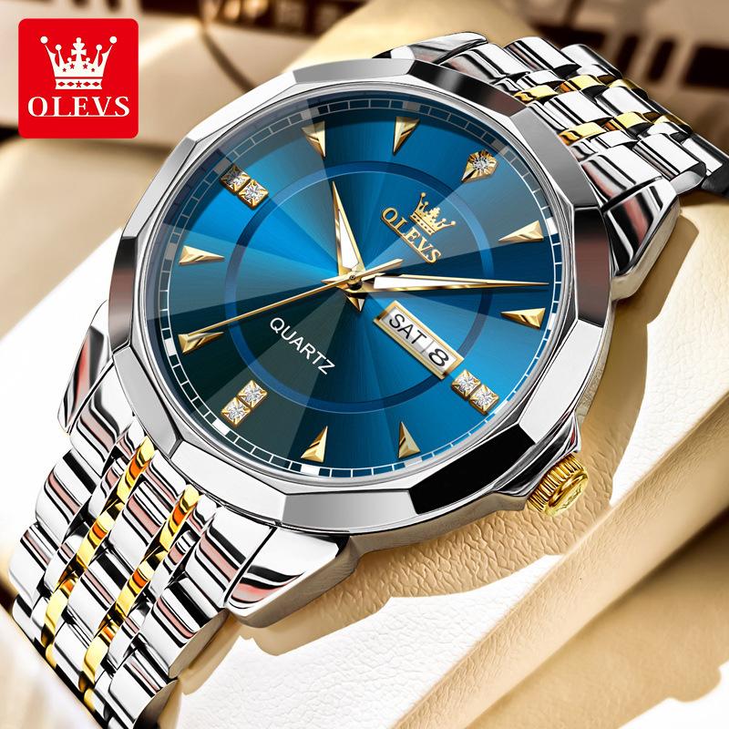 OLEVS Модные классические кварцевые часы с двойным календарем для мужчин, роскошные наручные часы с ромбовидным зеркалом, водонепроницаемые оригинальные мужские часы
