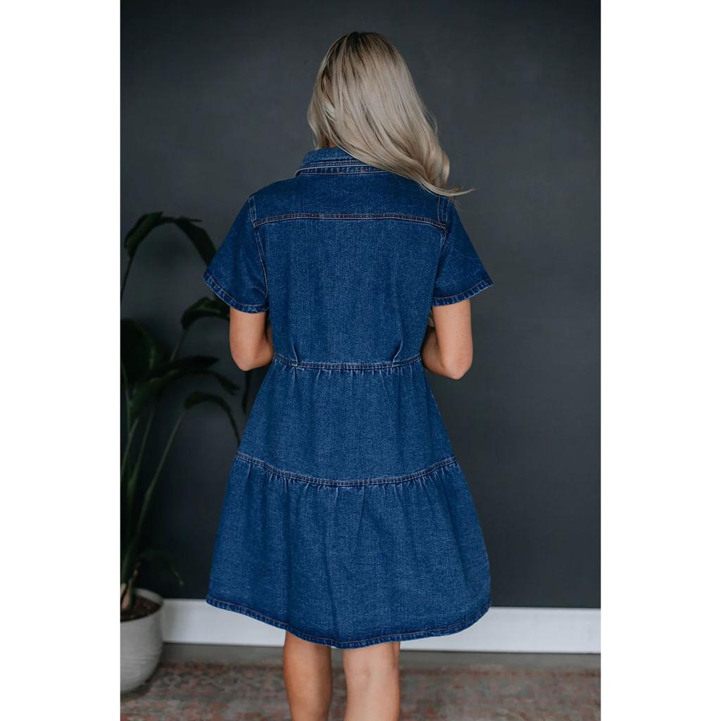 IHUASU Летнее повседневное джинсовое платье с короткими рукавами и лацканами