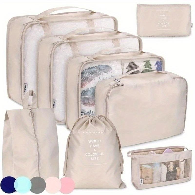 ** СУПЕР СТОИМОСТЬ ДОРОЖНЫХ СУМОК КОМПЛЕКТ: Включает в себя 3 одиночных дорожных кубика для одежды, 1 куб для нижнего белья, 1 сумку для грязного белья и косметики, 1 косметичку для косметики и туалетных принадлежностей, 1 сумку для обуви, 1 небольшую сумку для носков, монет, ручек, ключей и т. Д.. Они могут сделать ваш багаж аккуратным и упорядоченным, сделать вас легким, комфортным путешествием.