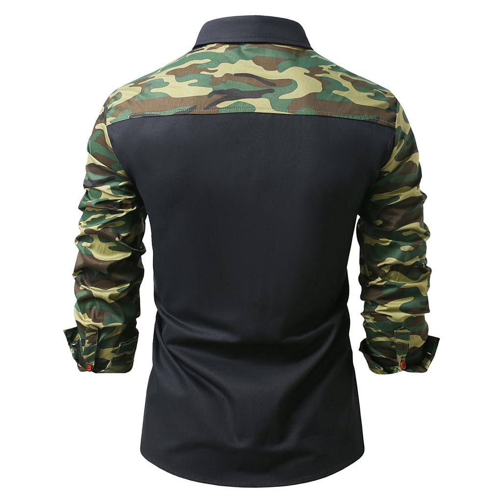Мужские повседневные рубашки в стиле милитари с принтом пэчворк и камуфляжем, рубашка с длинным рукавом для активного отдыха, мужские
