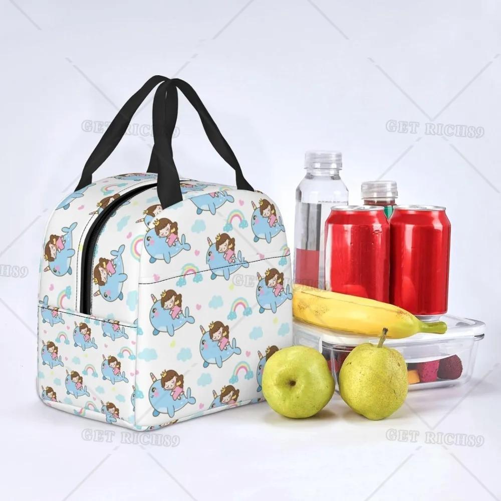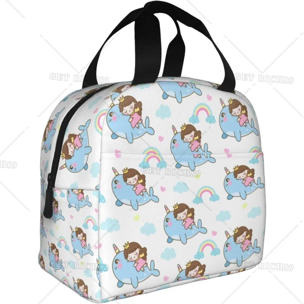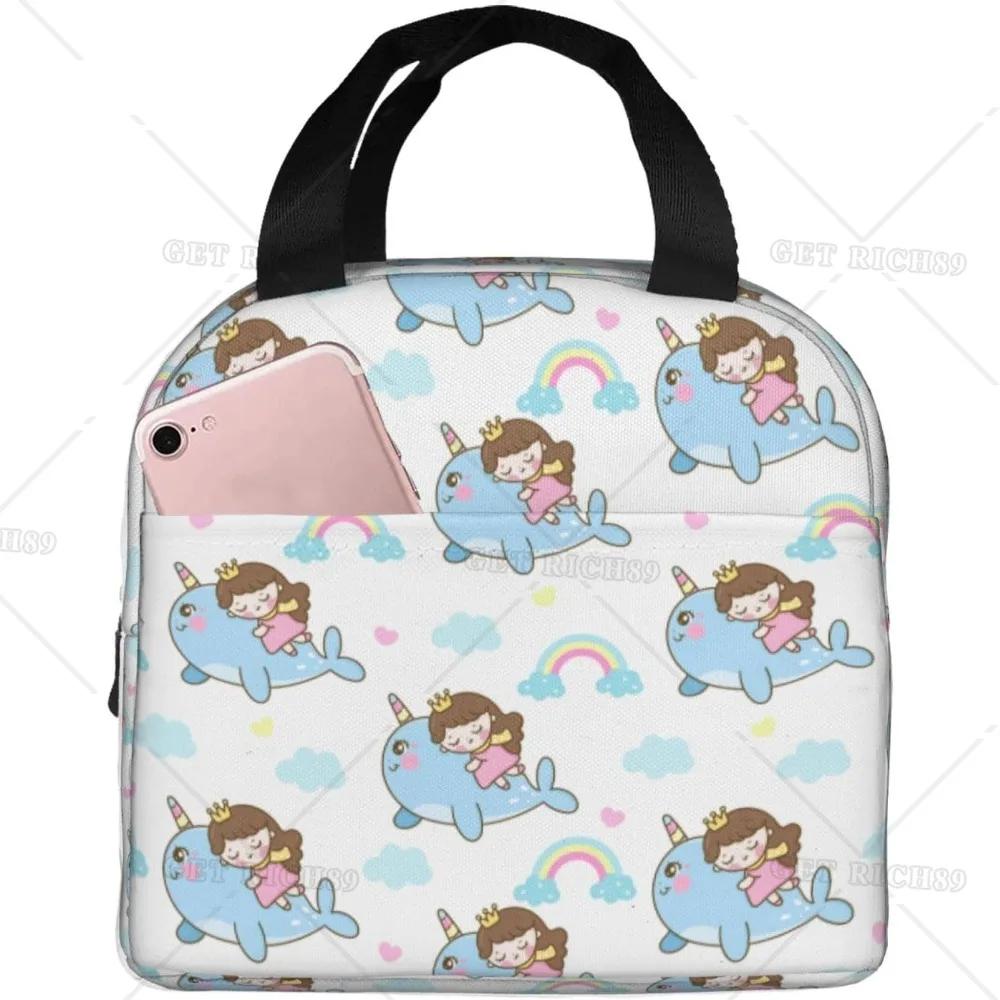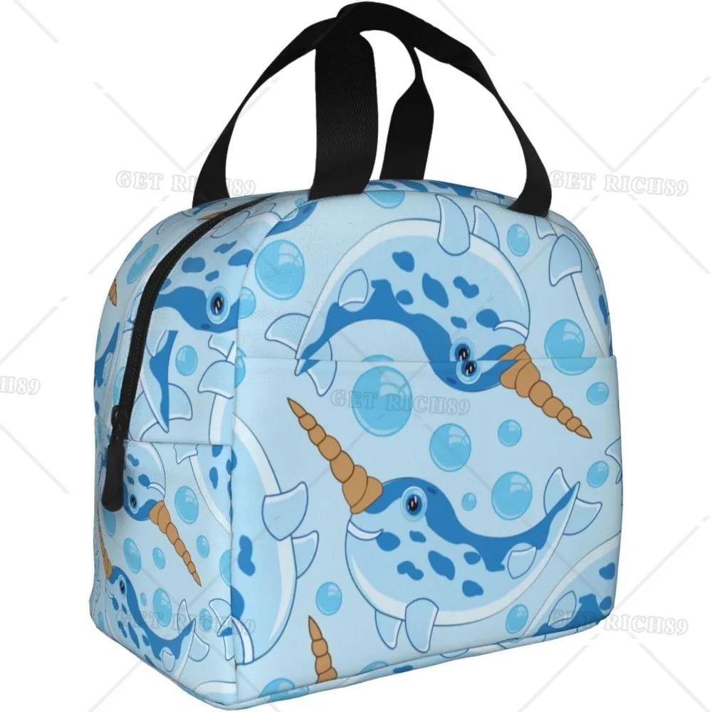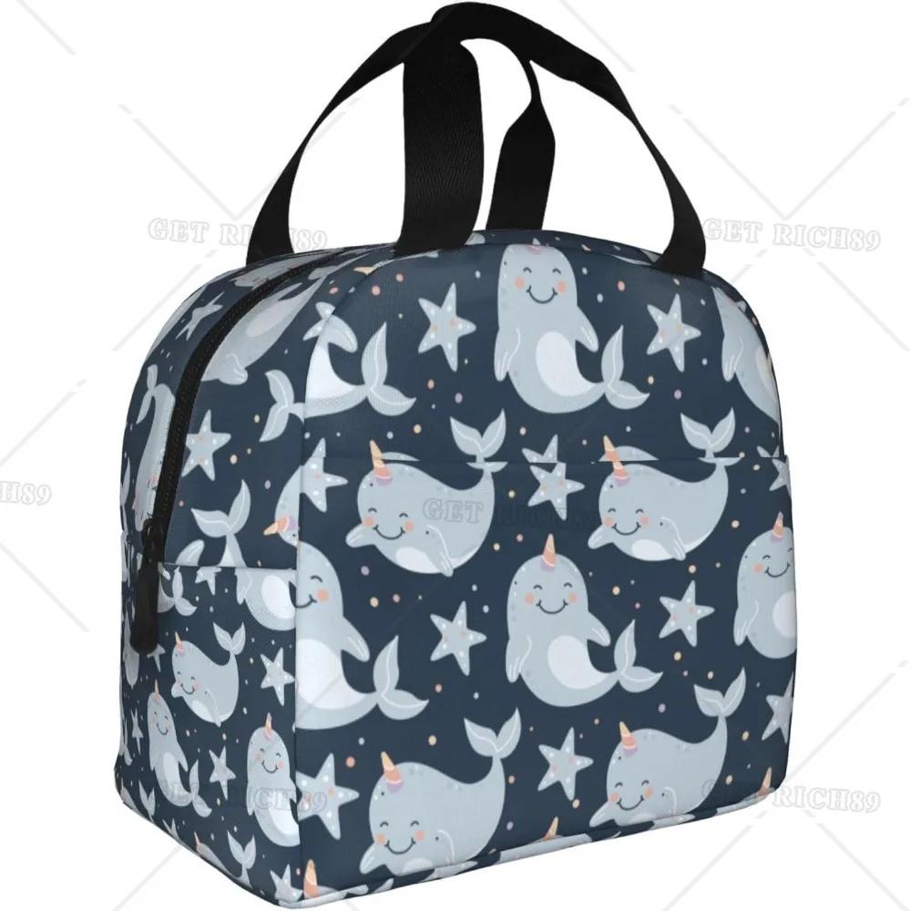 Narwhal Whale многоразовая сумка-холодильник для обеда мягкая легкая портативная сумка-ланч-бокс для женщин мужчин детей школы работы пикника