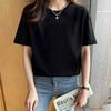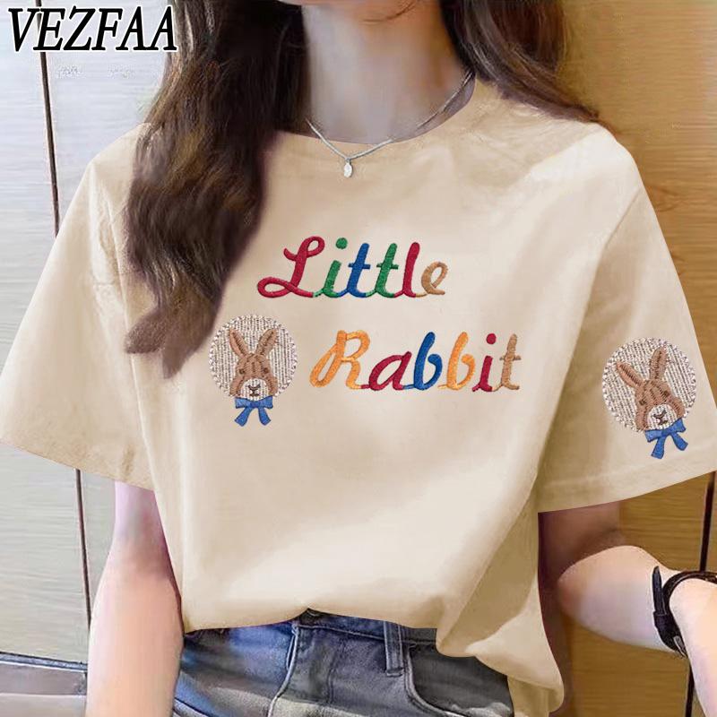 VEZFAA Женские модные повседневные летние весенние блузки и рубашки с круглым вырезом с короткими рукавами