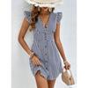 Женское платье с V-образным вырезом и полосатой талией, платье-рубашка, лето-осень