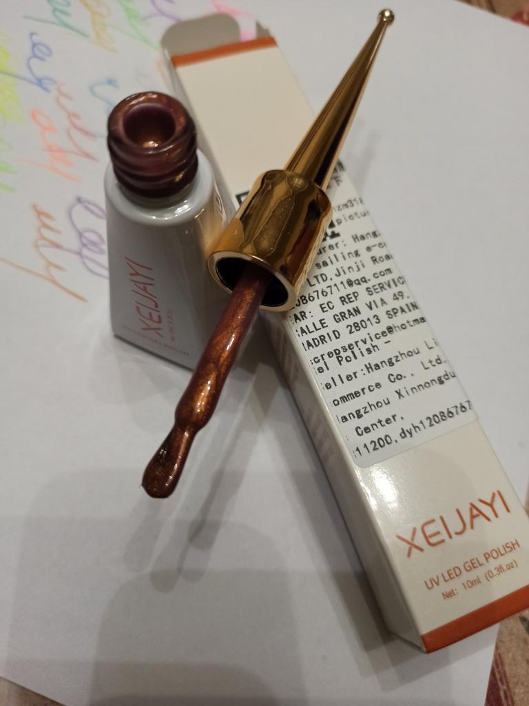 Дополнение: лак очень красивый, ложится хорошо, высыхает за минуту, лучше смотрится на подложке. Магнит магнитит отлично, полоса получается яркая даже на одном слое лака. К сожалению фото не передаёт всей яркости и красоты покрытия. Но заказывать ещё скорее всего не буду, т.к. объем ну очень маленький (((