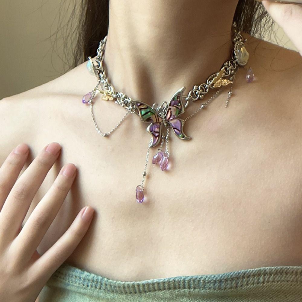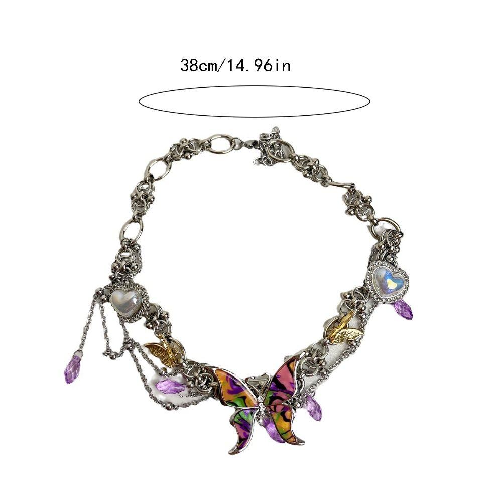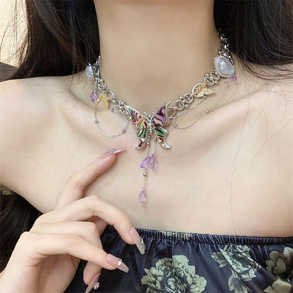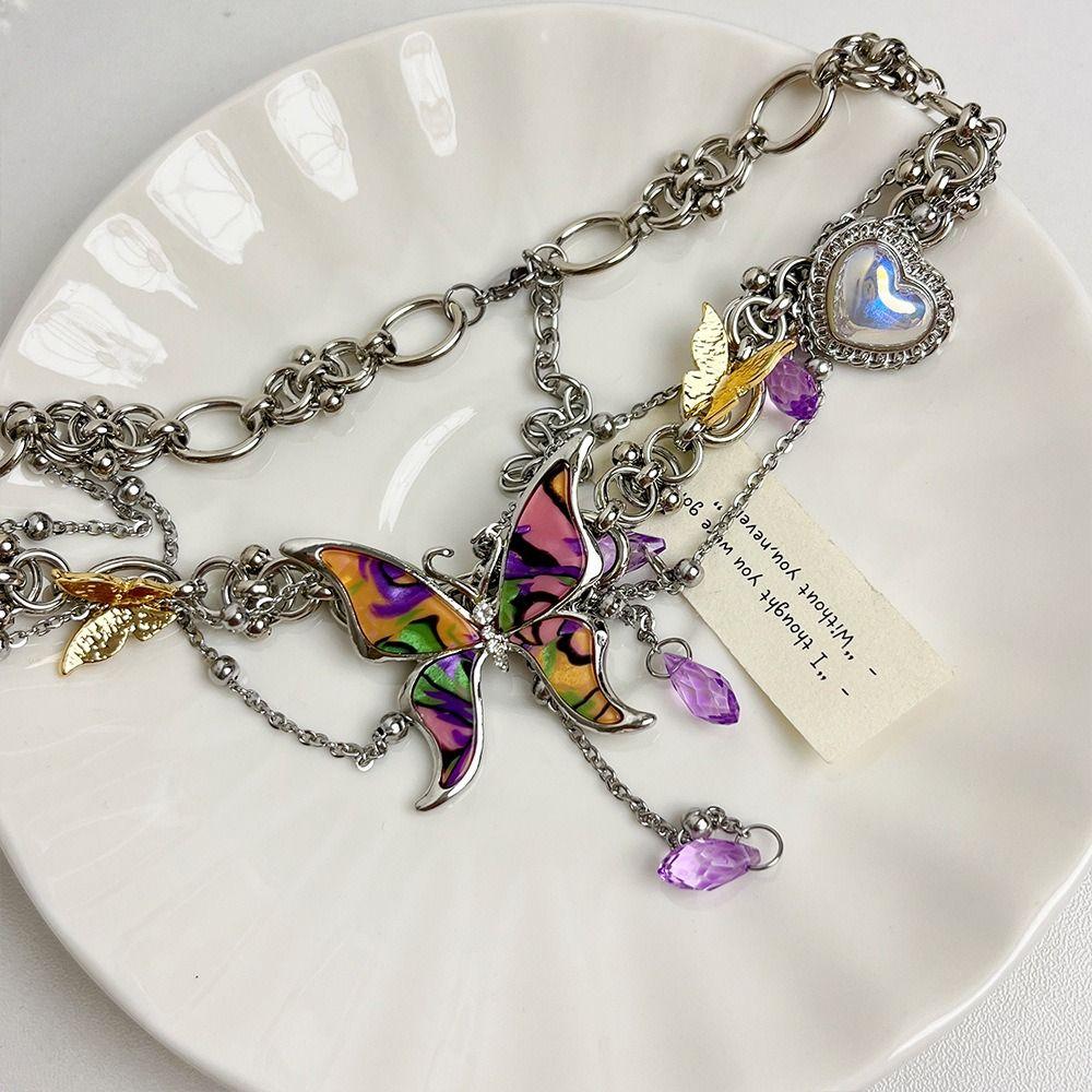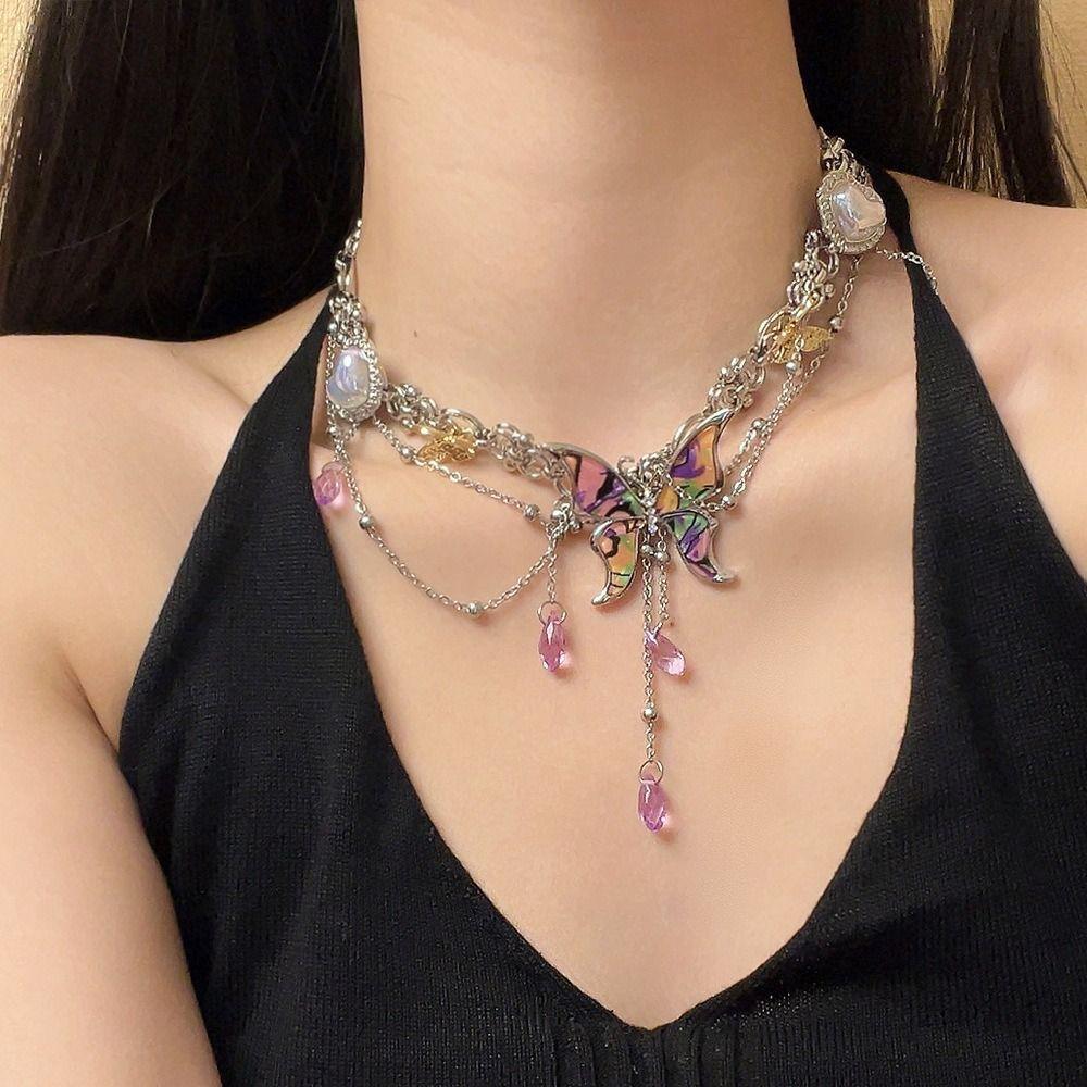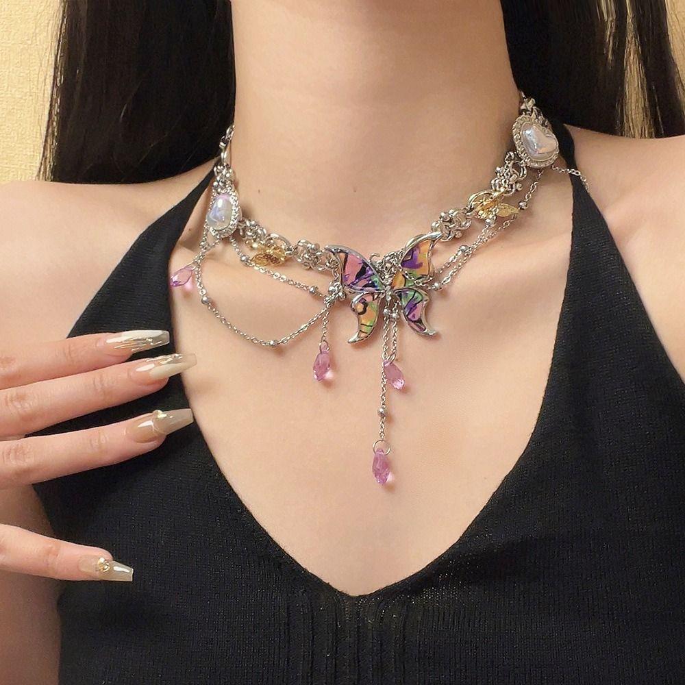 Colorful Butterfly Tassel Necklace Sweet Sweet Choker Fashion Y2k Clavicle Chain Gift