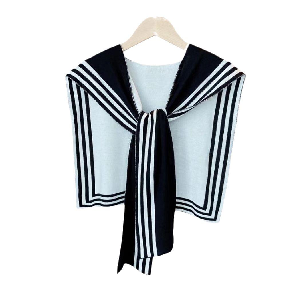 Однотонная вязаная шаль, простая блузка, наплечники, воротник-стойка, черно-белая полоса, шарф, накидка, шерстяные шарфы для женщин