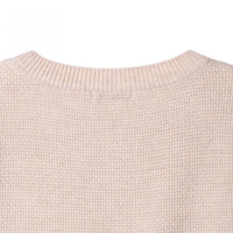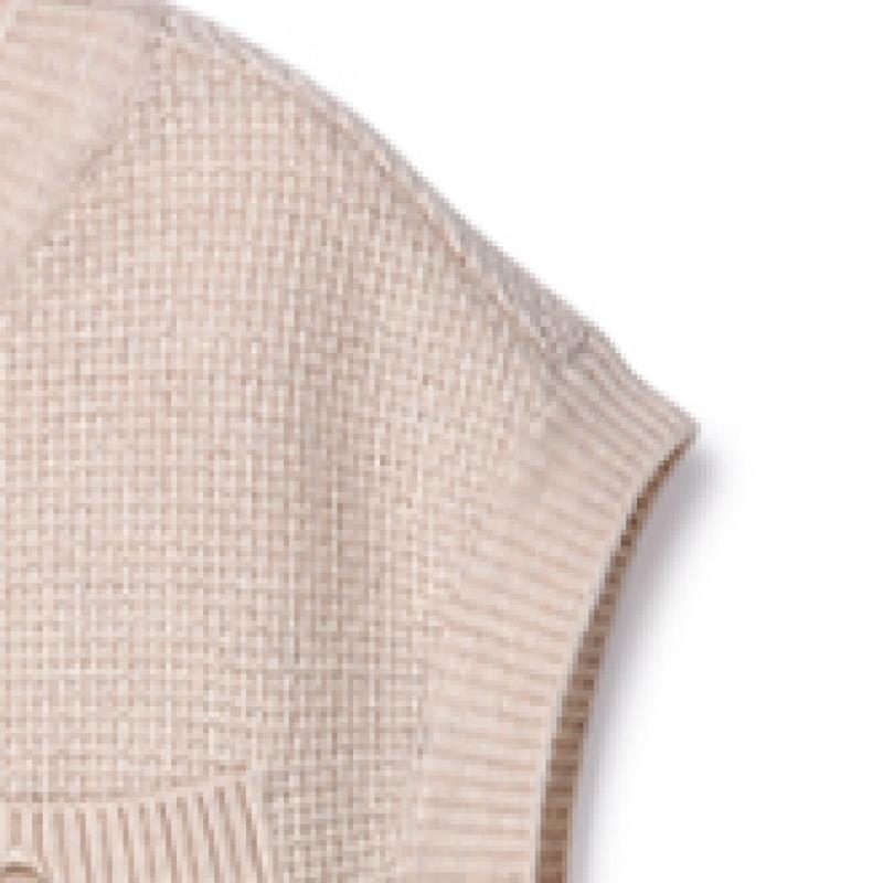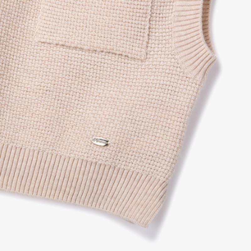 Свободный трикотажный жилет для девочек изготовлен из мягкой смеси хлопка и акрила, что обеспечивает комфорт при ношении.. Модель с нагрудным карманом и свободным кроем сочетает в себе практичность и изысканность, а V-образный вырез позволяет стильно комбинировать ее с блузками или платьями.