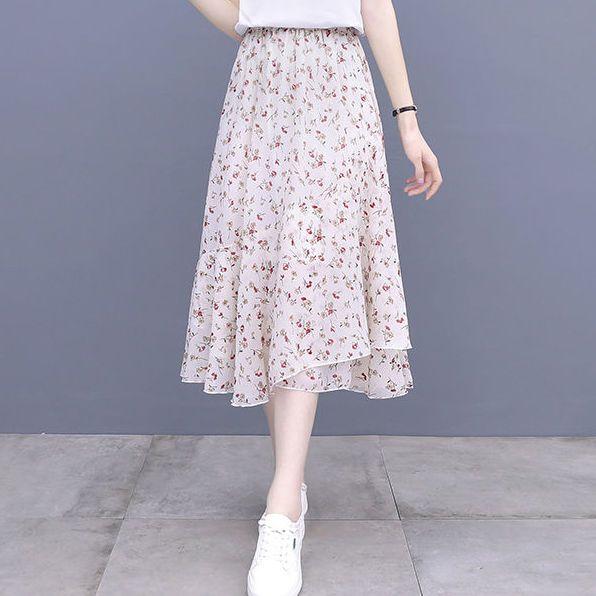 Женская юбка А-силуэта с высокой талией и цветочным принтом, юбка средней длины, летняя плиссированная юбка, платье средней длины