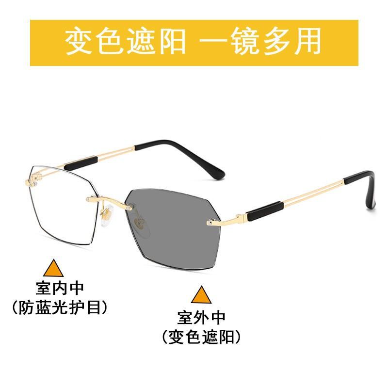 Очки для чтения без оправы, меняющие цвет, мужские деловые очки для чтения, средние, старые, анти-синий свет, анти-усталость, светочувствительные очки
