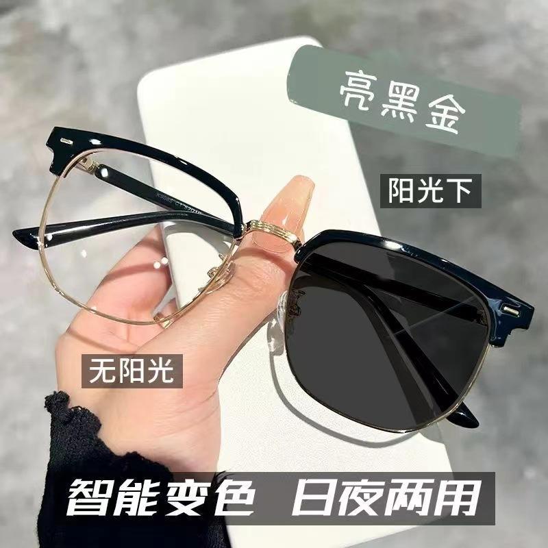 Очки для близорукости с изменяющим цвет полуободком, для обычного лица, женские, трендовые, с черной оправой, с защитой от синего света, можно подобрать по диоптриям, солнцезащитные очки с градусником